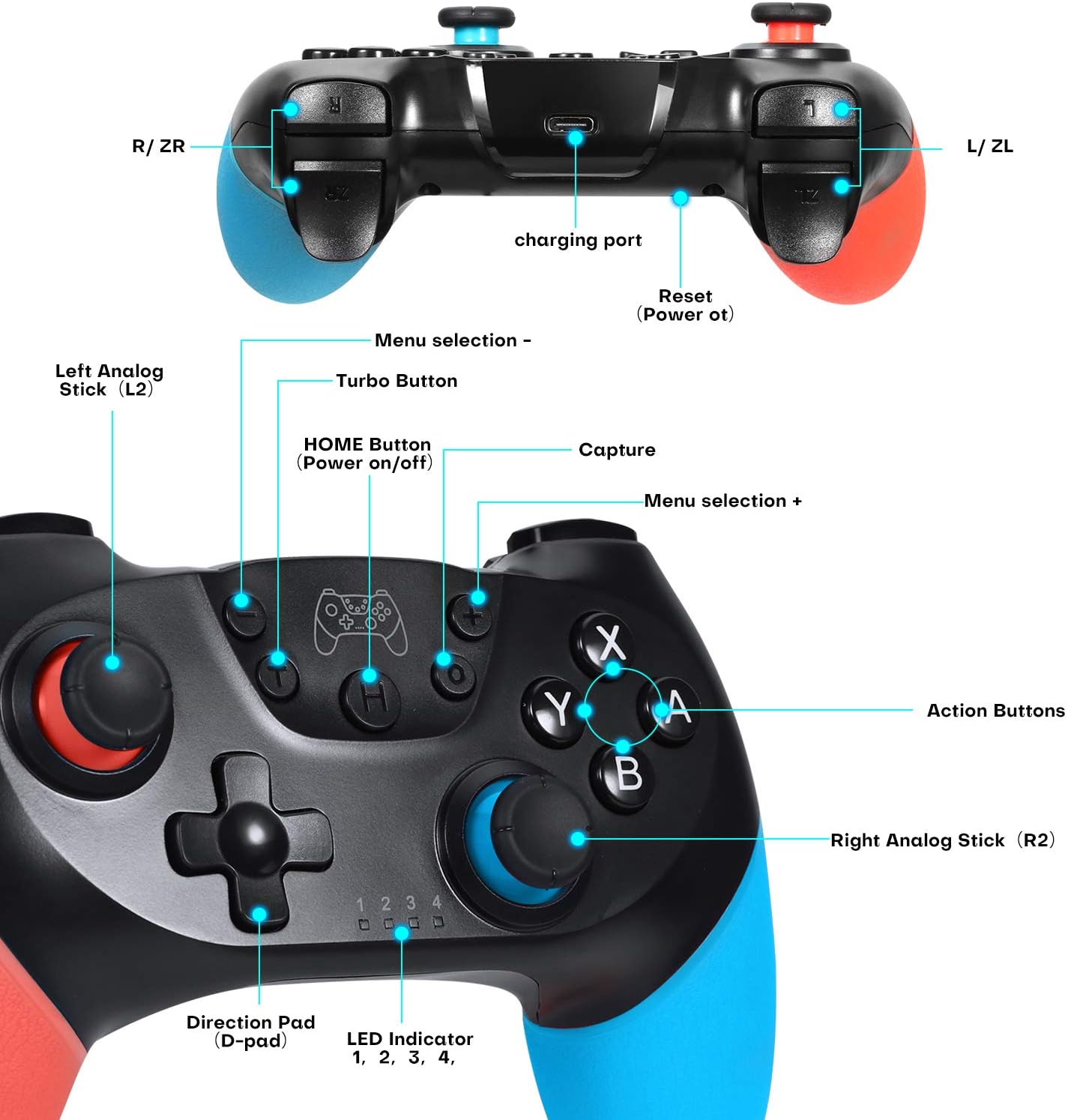 Wireless Switch Controller, Switch Controller for N-intendo Switch/Switch Lite, Wireless Switch Gamepad Joypad with 6-Axis Gyro, Double Shock