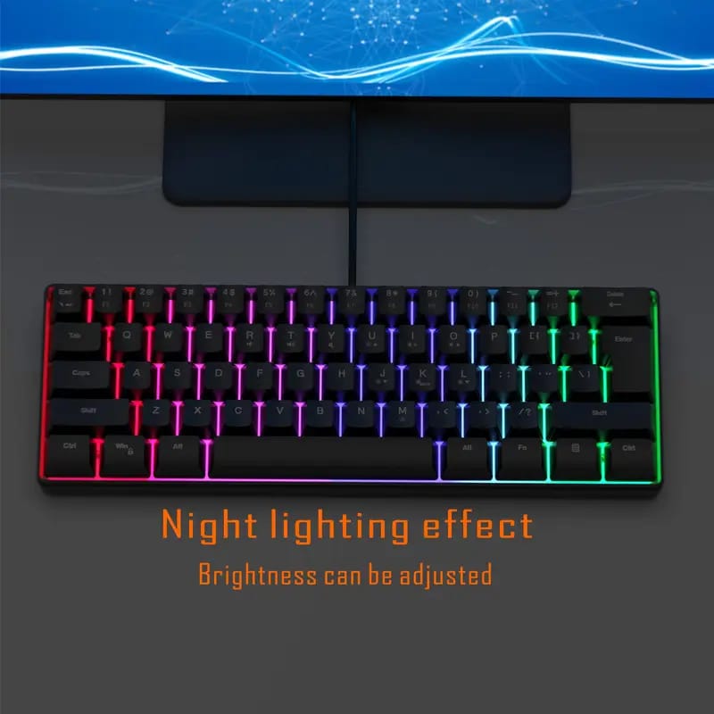 Black RGB Colorful Luminous Gaming Keyboard Mini 60% Scale 61 Keys Translucent USB Keyboard Suitable For Desktop Computer Laptop All-in-one Multiple Systems Multiple Games
