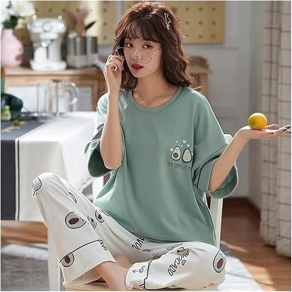 KAKAYO Women Cute Cozy Pajama Set 2 Pieces Casual Summer Short Sleeve Sleepwear Homewear for Ladies