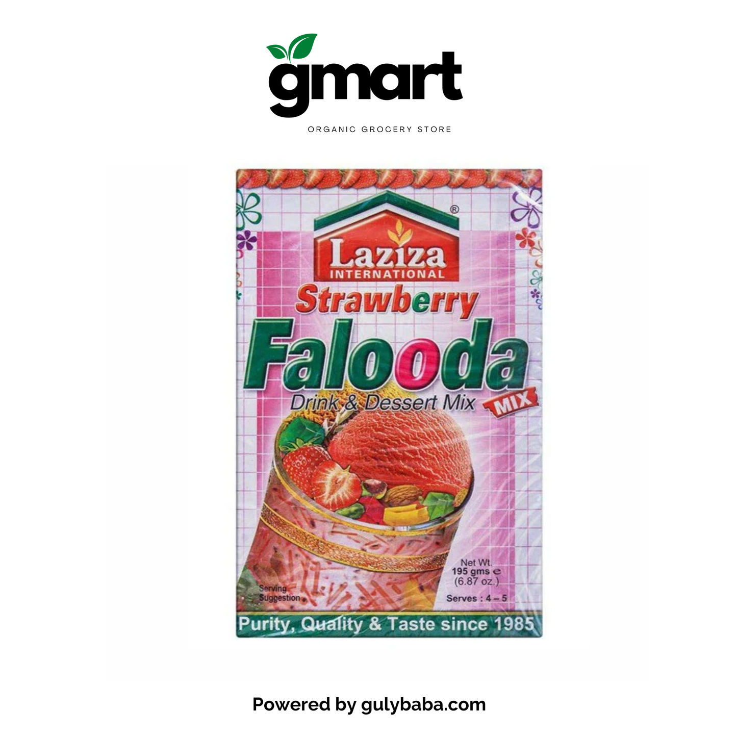 Product description ;Laziza Strawberry Falooda Drink & Dessert Mix 1 is a quick recipe to cook Falooda at your home with a sweet touch...