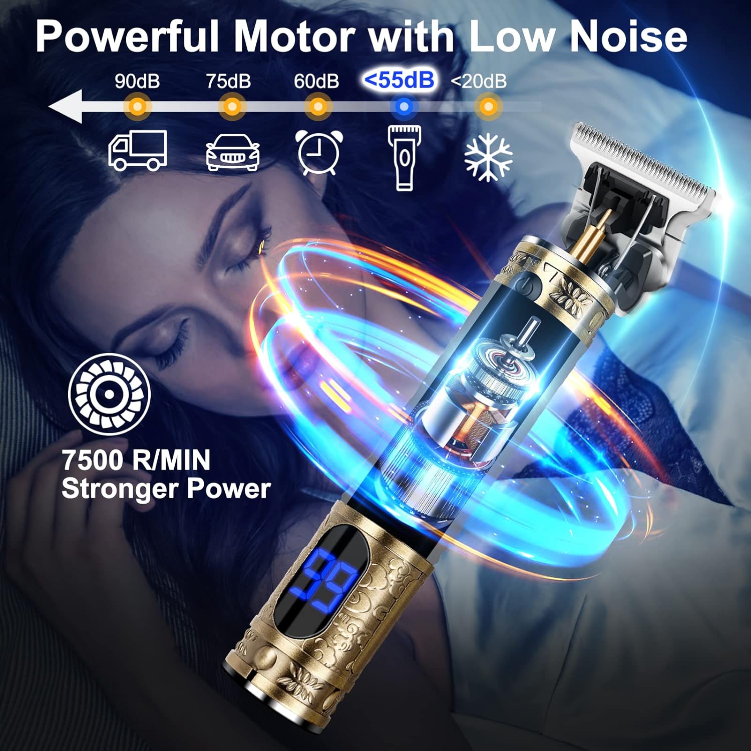- Stronger Motor: Most motors of hair machines on the market run at 6500-7000 rpm, but the motor of hair clippers works at 7500 rpm, such a powerful driving force makes the already sharp men's razor even sharper.