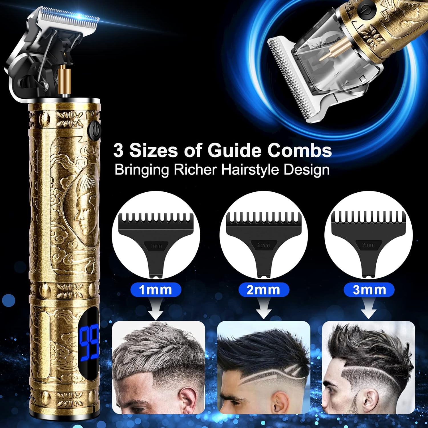 - 1MM, 2MM, and 3MM guide combs for different lengths as needed