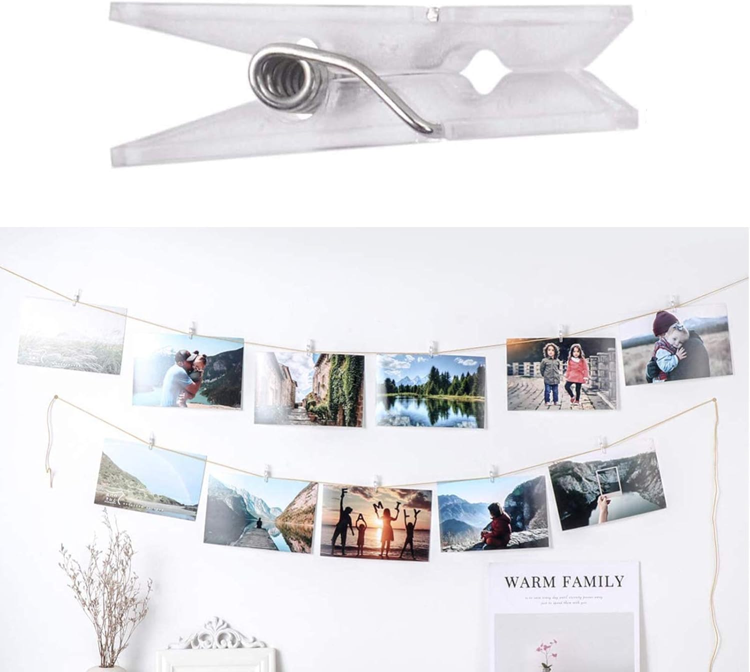 - Small and easy to use: transparent mini clothes pegs are a good decoration and create a warm and romantic atmosphere. Ideal for decorating your photo wall, home, wedding, Christmas, anniversary, birthday party.
