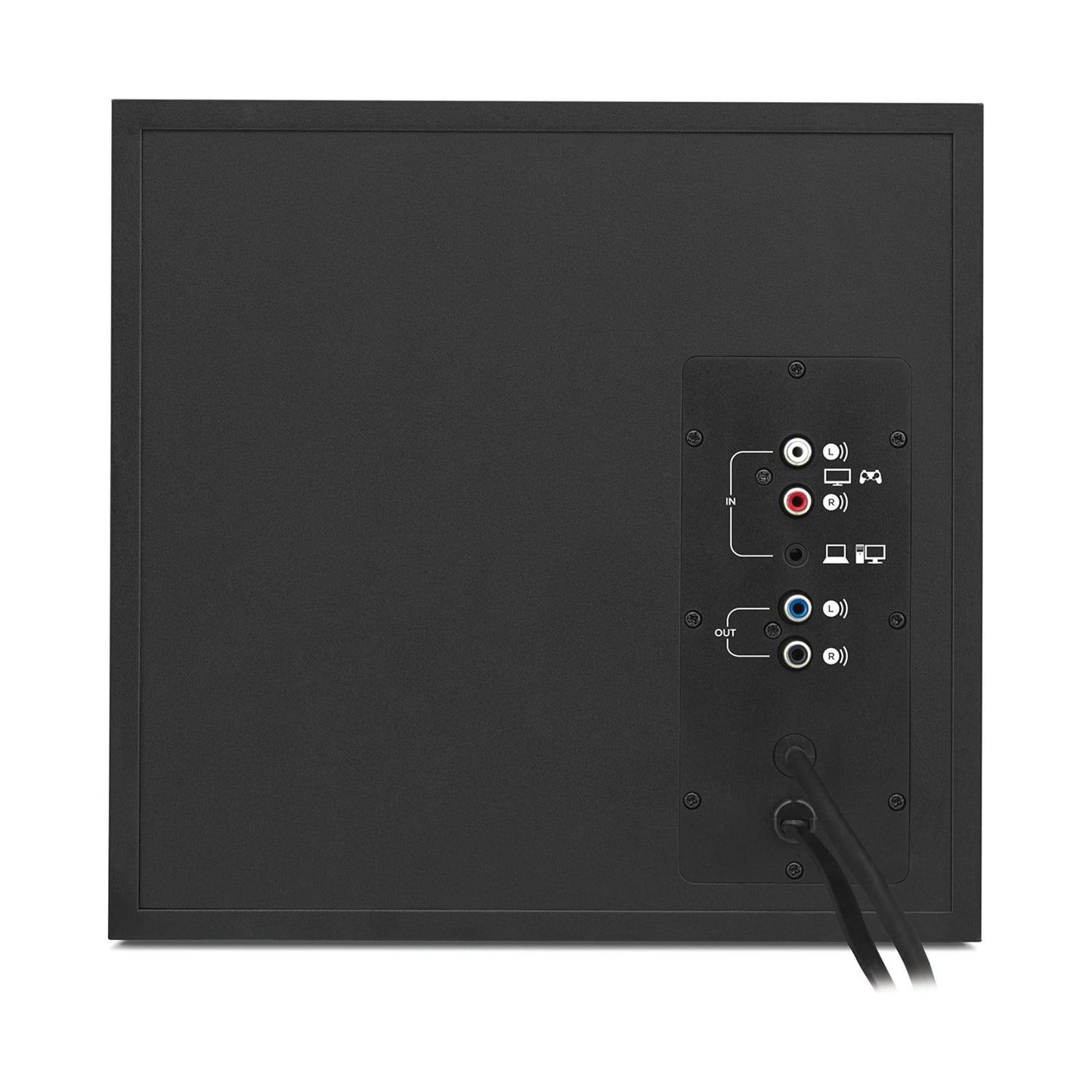 This 120 Watts Peak/60 Watts RMS system delivers powerful sound with dynamic bass. Connect three compatible devices via 3.5mm and RCA inputs. Access all controls from one integrated control pod.