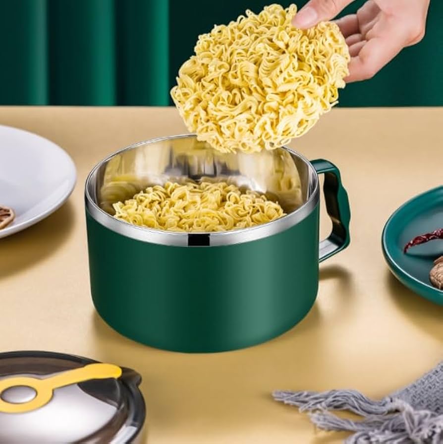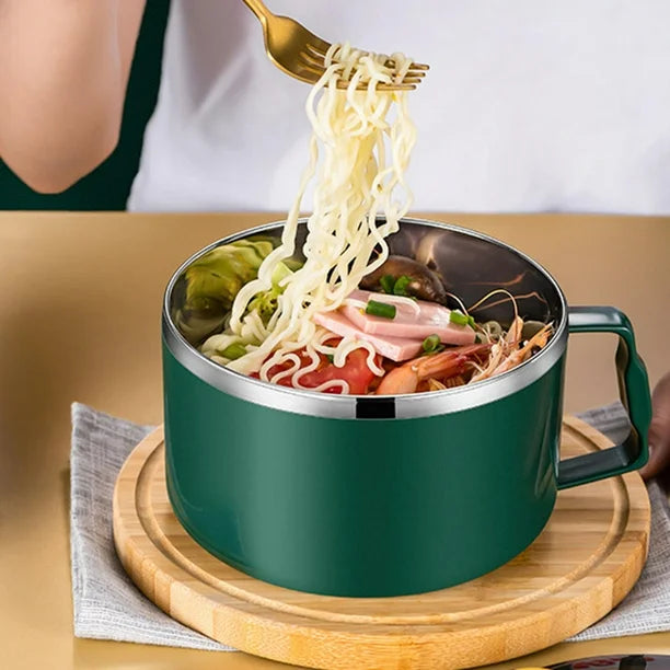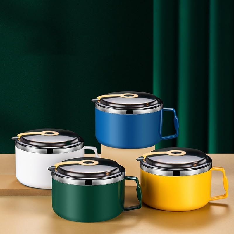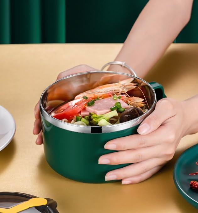 304 Stainless Steel Ramen Bowls With Lid Large Portable Insulated Instant Noodle Fruit Salad Rice Soup Bowl Kitchen Tableware