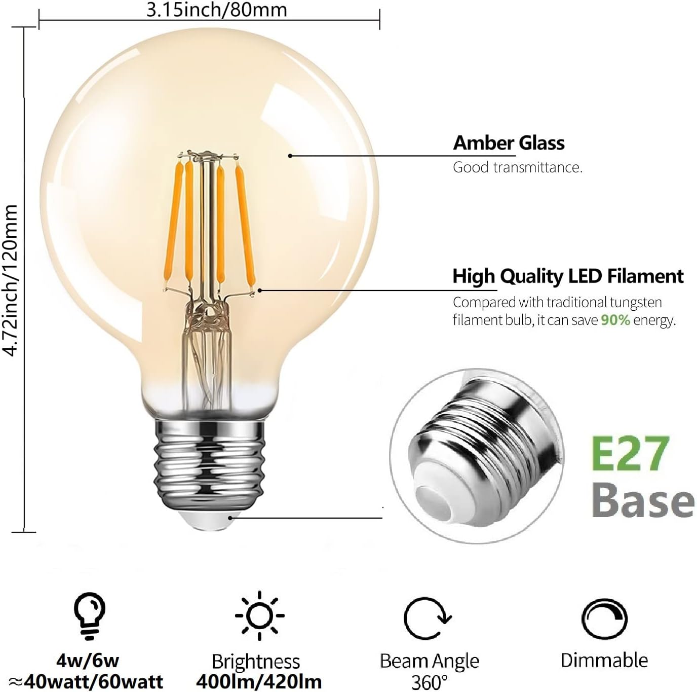 ![TopLeder E27 Edison Light Bulbs 4 Pack, Dimmable E27 Screw Bulb Vintage LED Bulb, 400LM 2700K Warm White 4W (40W Incandescent Equivalent), G80 Amber Glass Old Fashioned Style Globe Retro Spiral Bulb [Energy Class A+]](http://gulybaba.com/cdn/shop/files/61AqKQpXyxL._AC_SL1500.jpg?v=1689632564&width=1445)