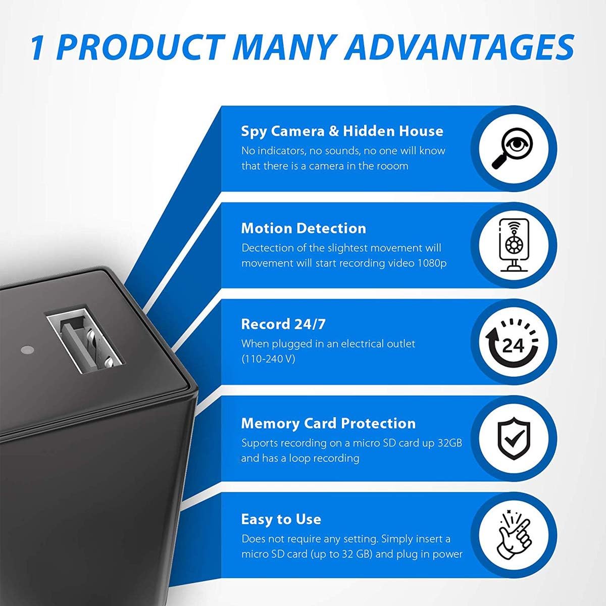 Camera Hidden Camera USB Charger WiFi Recording Device Home Security Full HD 1080 Mini Spy Camera Surveillance USB Smart Charger Tiny Spy Tool