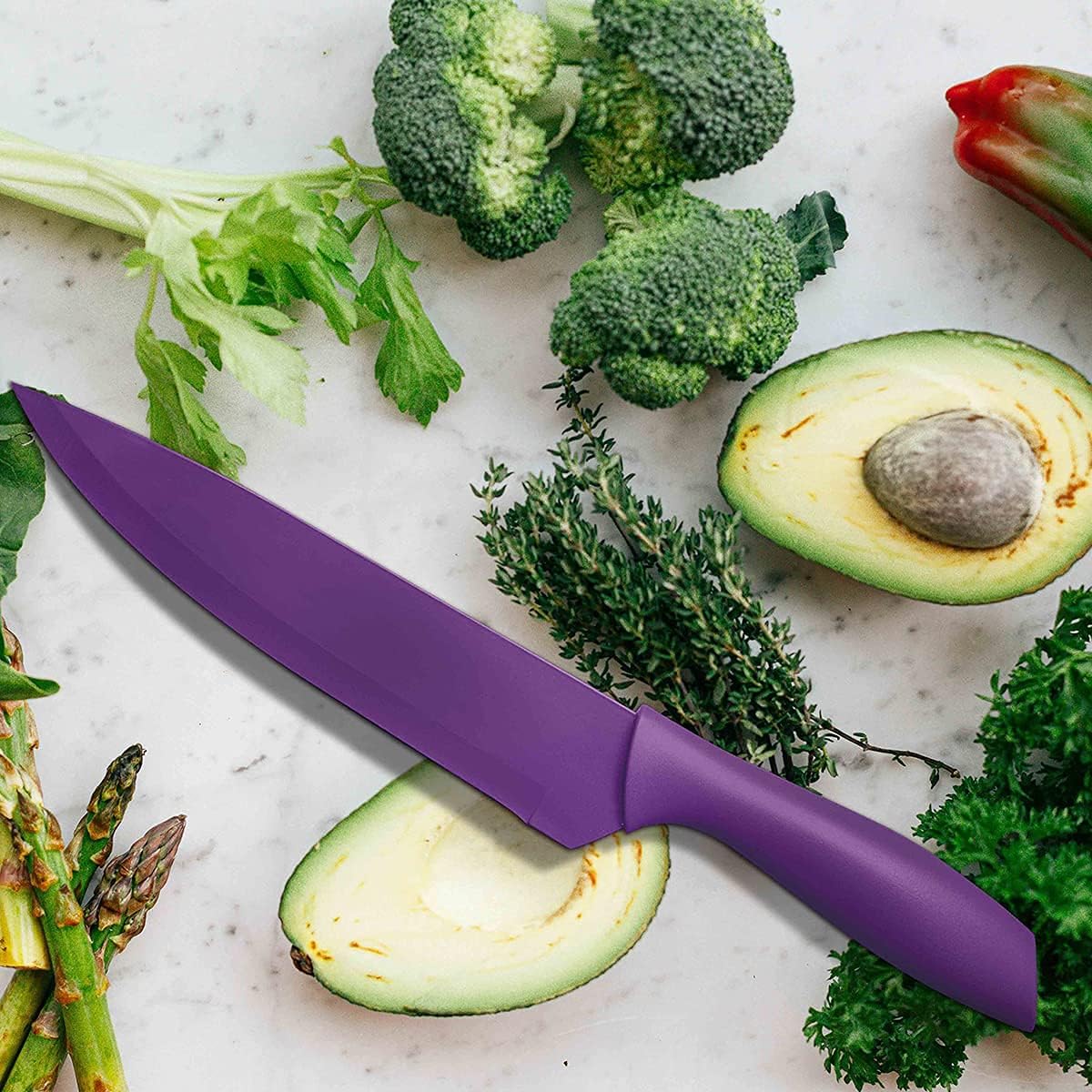 - 13" Long Multi-Purpose Anti Rust Coating Chef Knife Kitchen Essentials, Regular, Solid Color Sharp Blade Knives