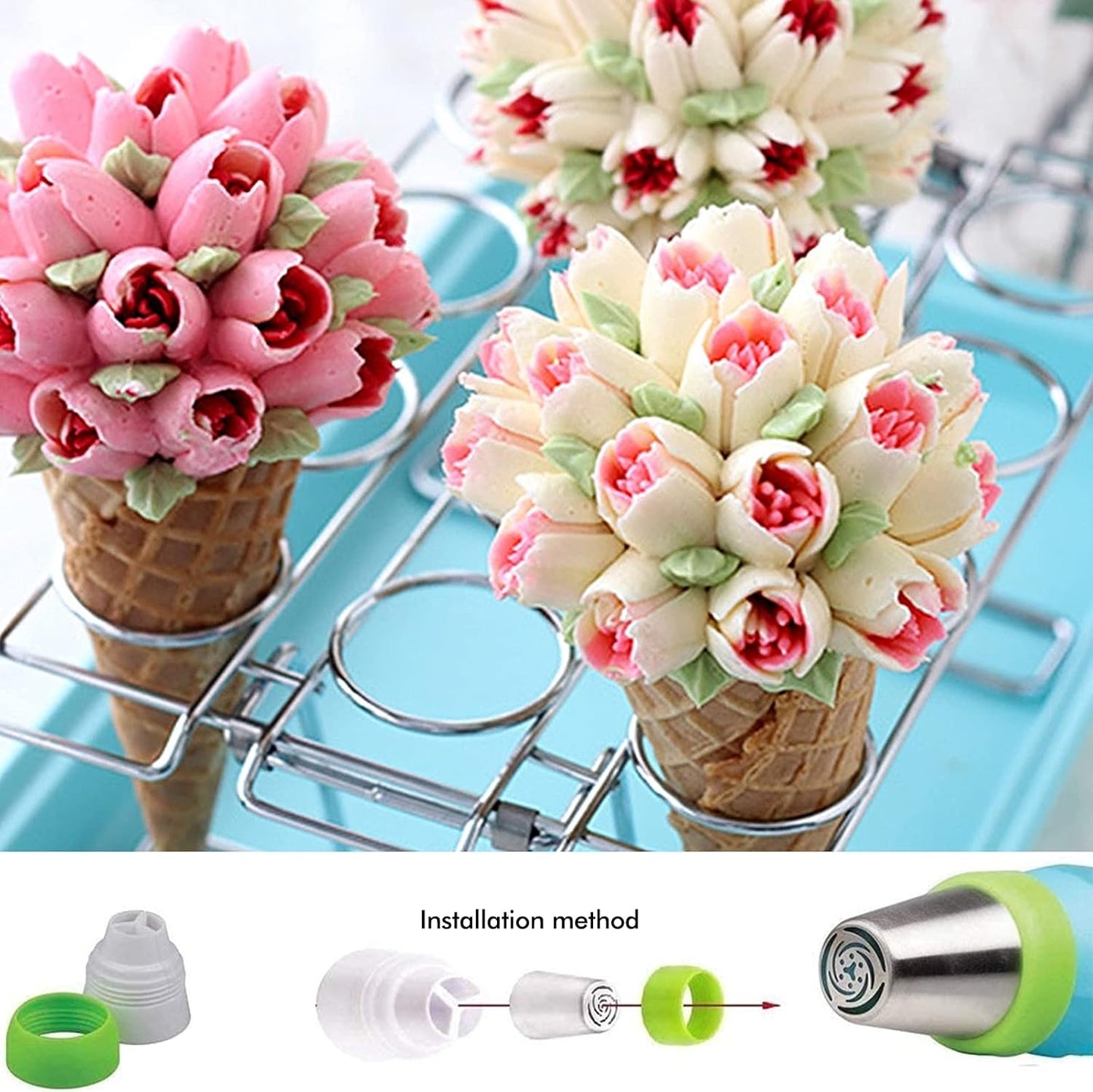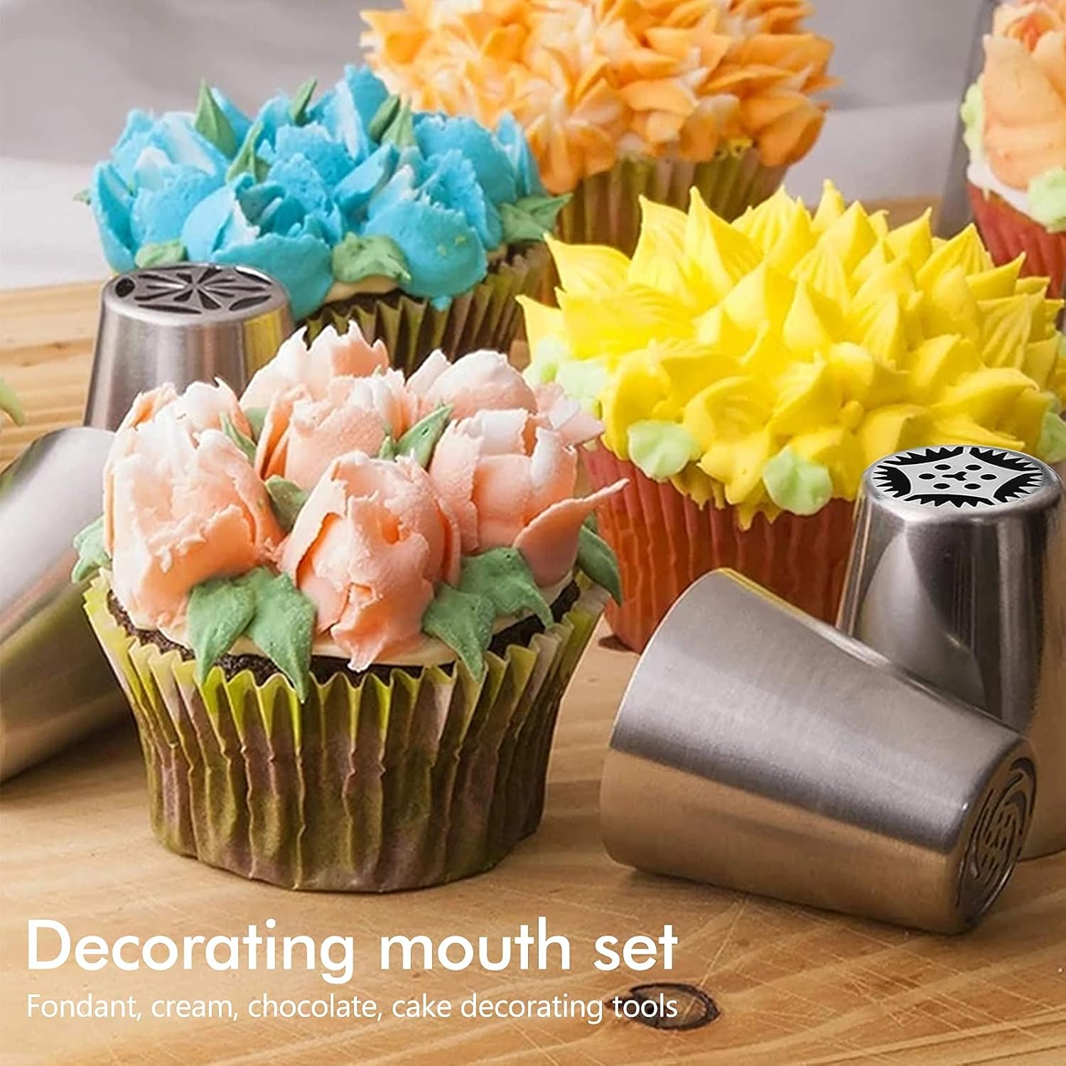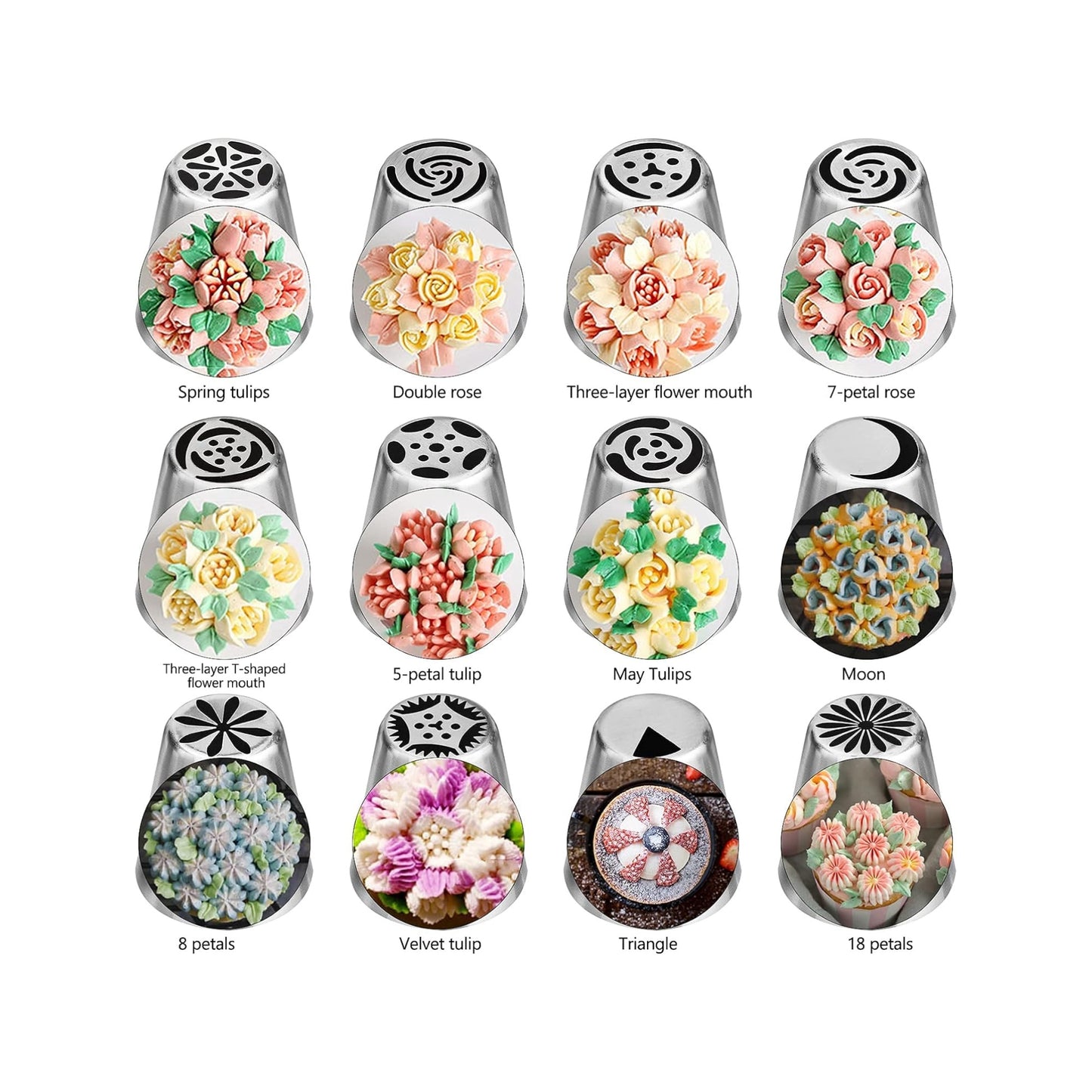 Set of 12 Stainless Steel Icing Nozzles Russian Piping Nozzles Set Flowers Nozzles for Cakes Cupcakes