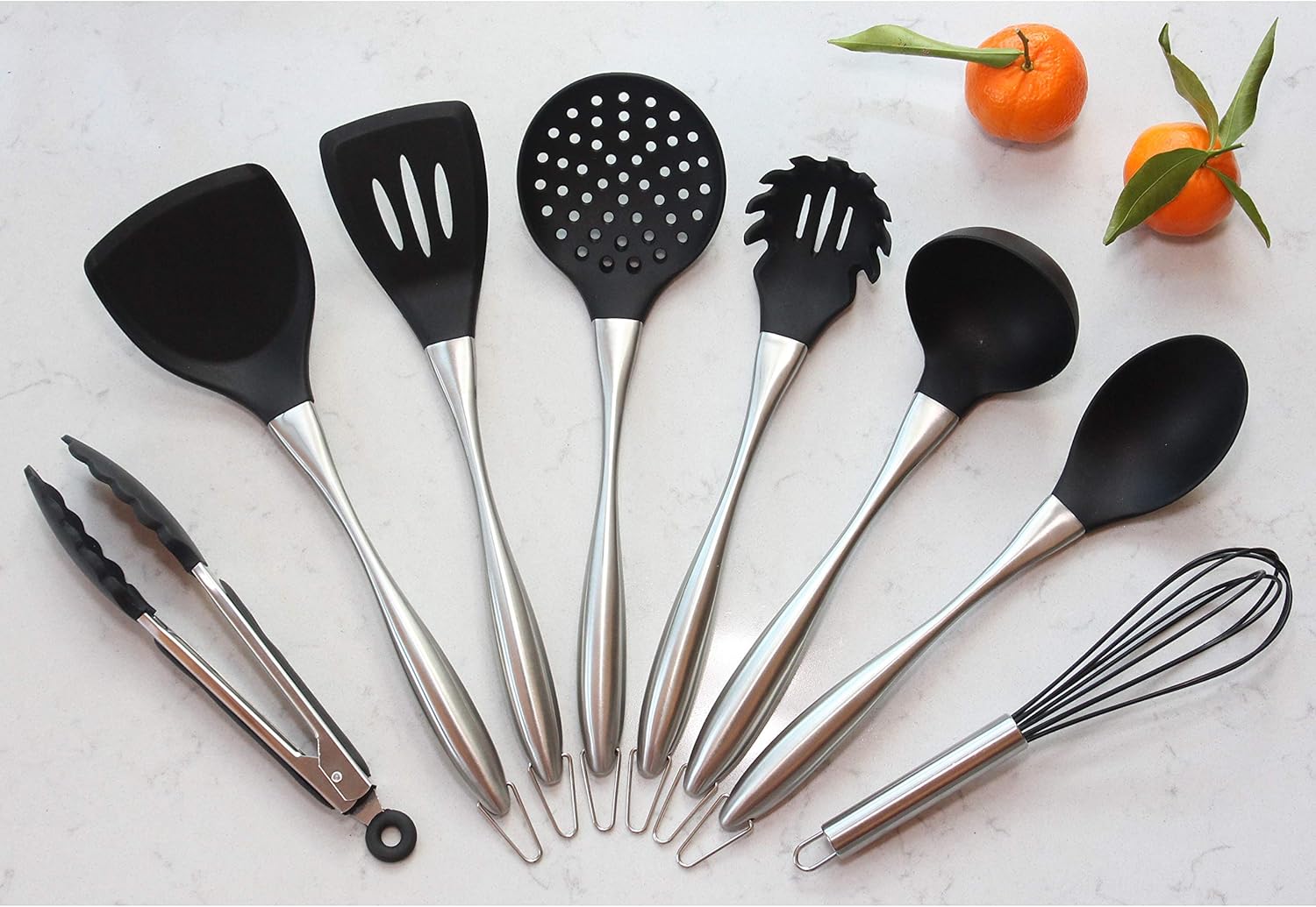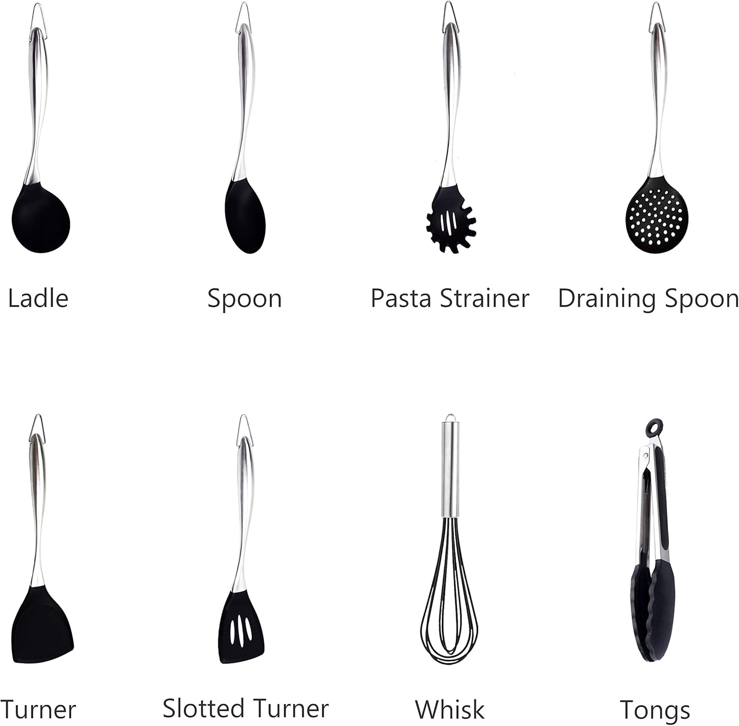 Silicone Cooking Utensil Set, 8 Piece Kitchen Utensils Set by TrueChef, Non-stick Heat Resistant Kitchen Gadgets Cookware with Brushed Stainless Steel Handle