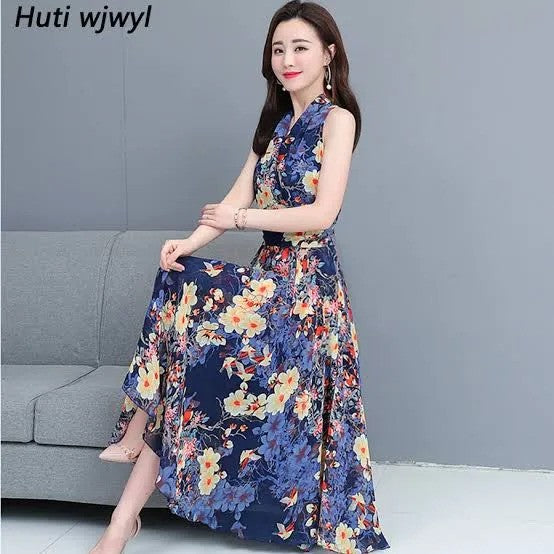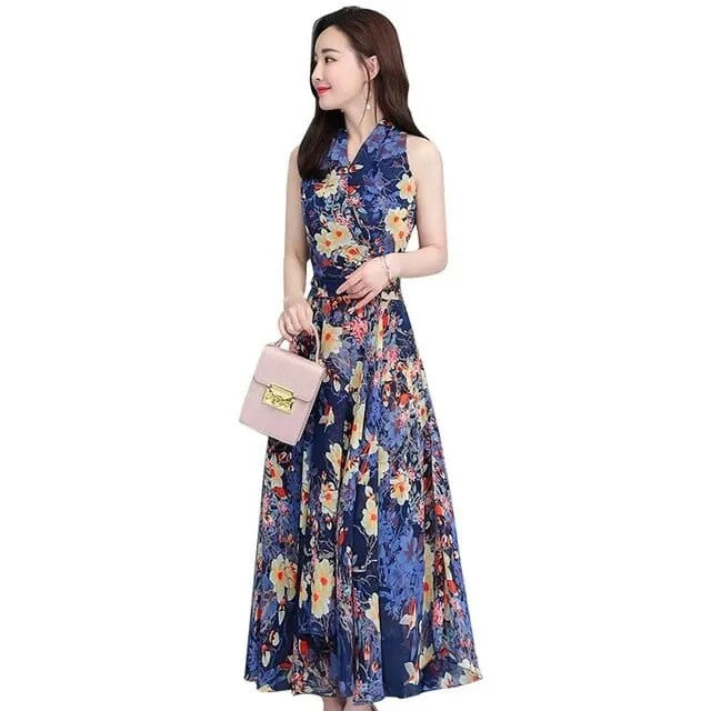 Floral Halter Neckline Sleeveless Maxi X-line Dress