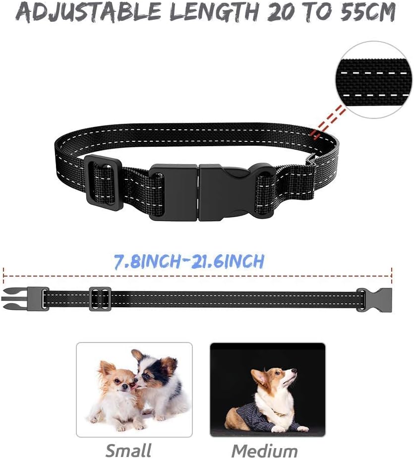 - 🐶ADJUSTABLE TRAINING COLLARS FOR 15-110 LBS DOGS: High-quality dog bark collar 2.0cm width black polyester belt with 2 reflective stripes, adjustable from 20 ~ 55 cm length. Barking control collar is suitable for dogs weighing from 15 to 110lbs.