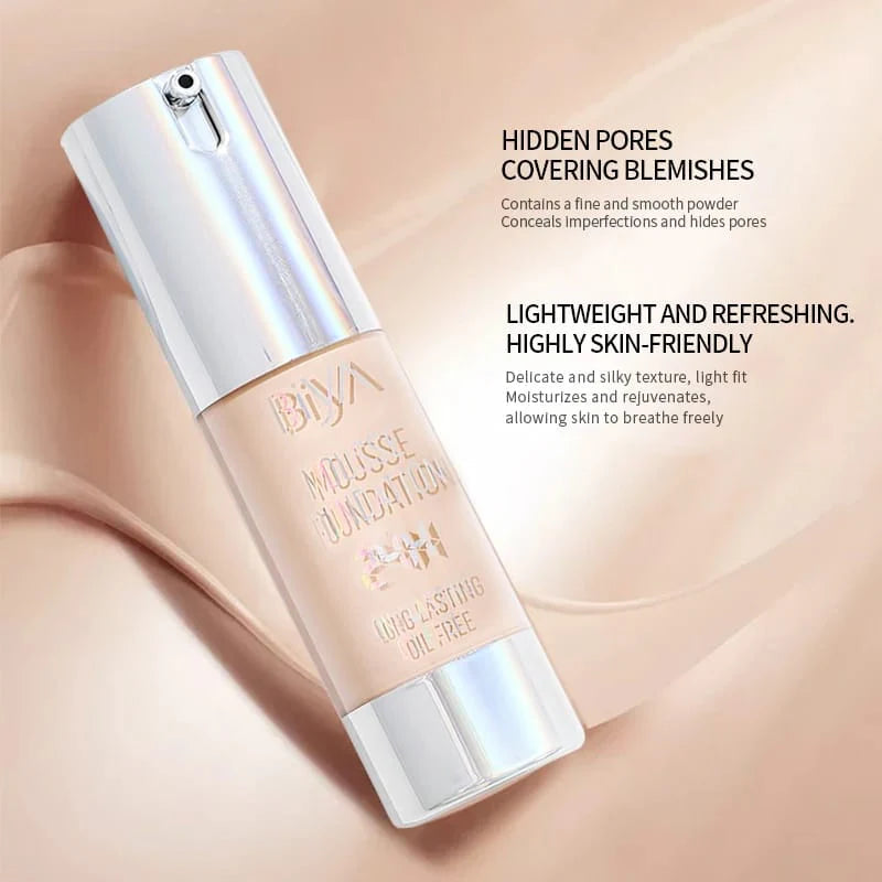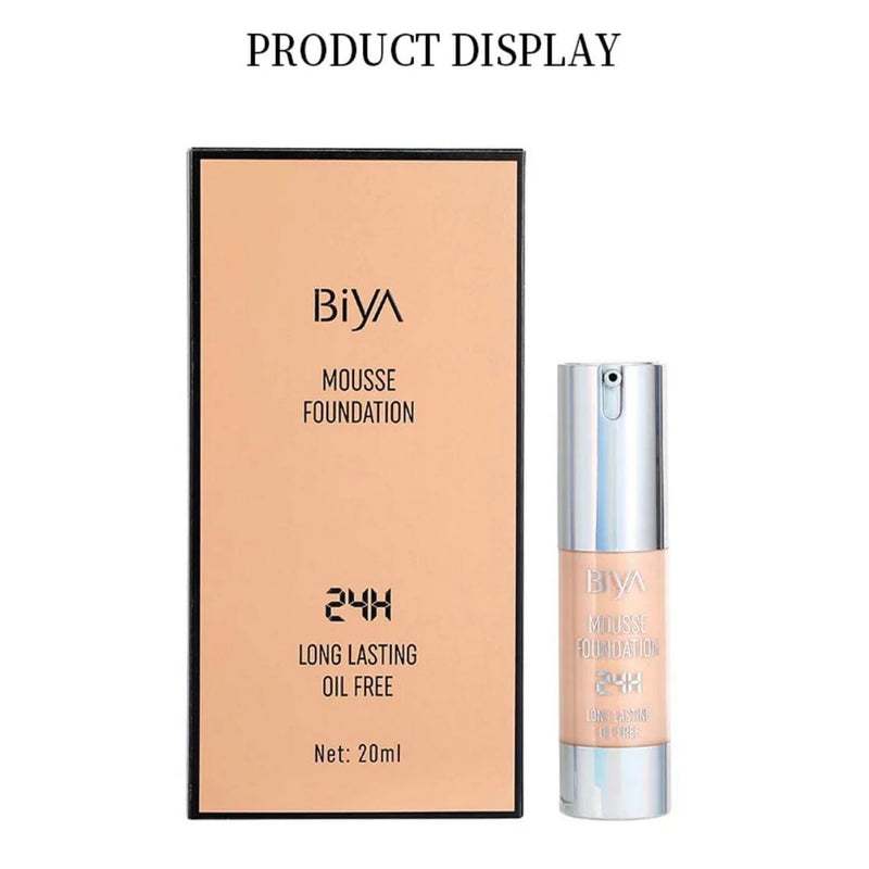 Get flawless, shine-free wear all day with Biya's innovative Long Lasting Oil Control Mousse Foundation. This airy, oil-free formula goes on as a silky, whipped mousse but dries down to a natural, flexible matte finish. Perfect for those with oily or combination skin!