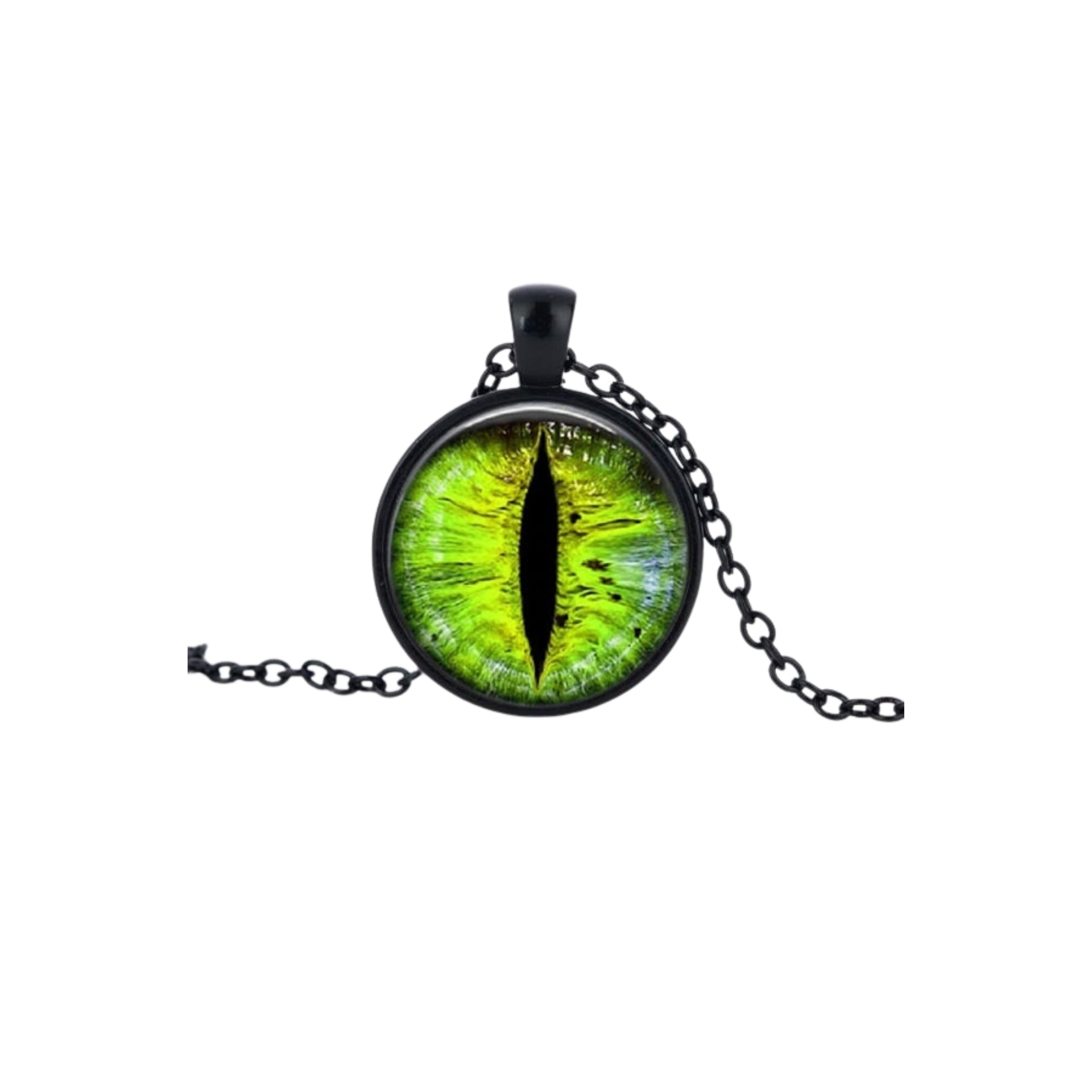 - Green Cat Eye Necklace Charms Dragon Eyes Photo Glass Cabochon Pendant Handmade Black Chain Necklaces Women Men