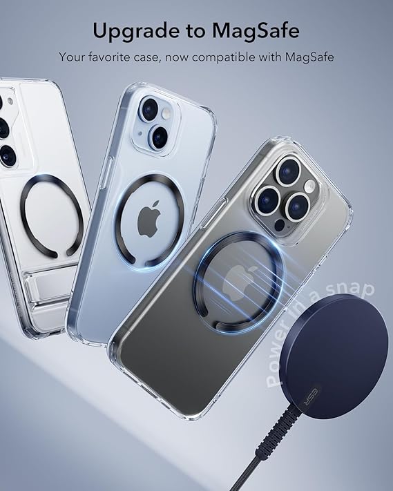 ESR HaloLock Universal Ring, Pack of 2 Magnetic Wireless Charging Conversion Kit, Compatible with MagSafe Metal Ring Accessories, iPhone 16/15/14/13/12 Series and Galaxy S23/S22/S21/S20, Black Silver