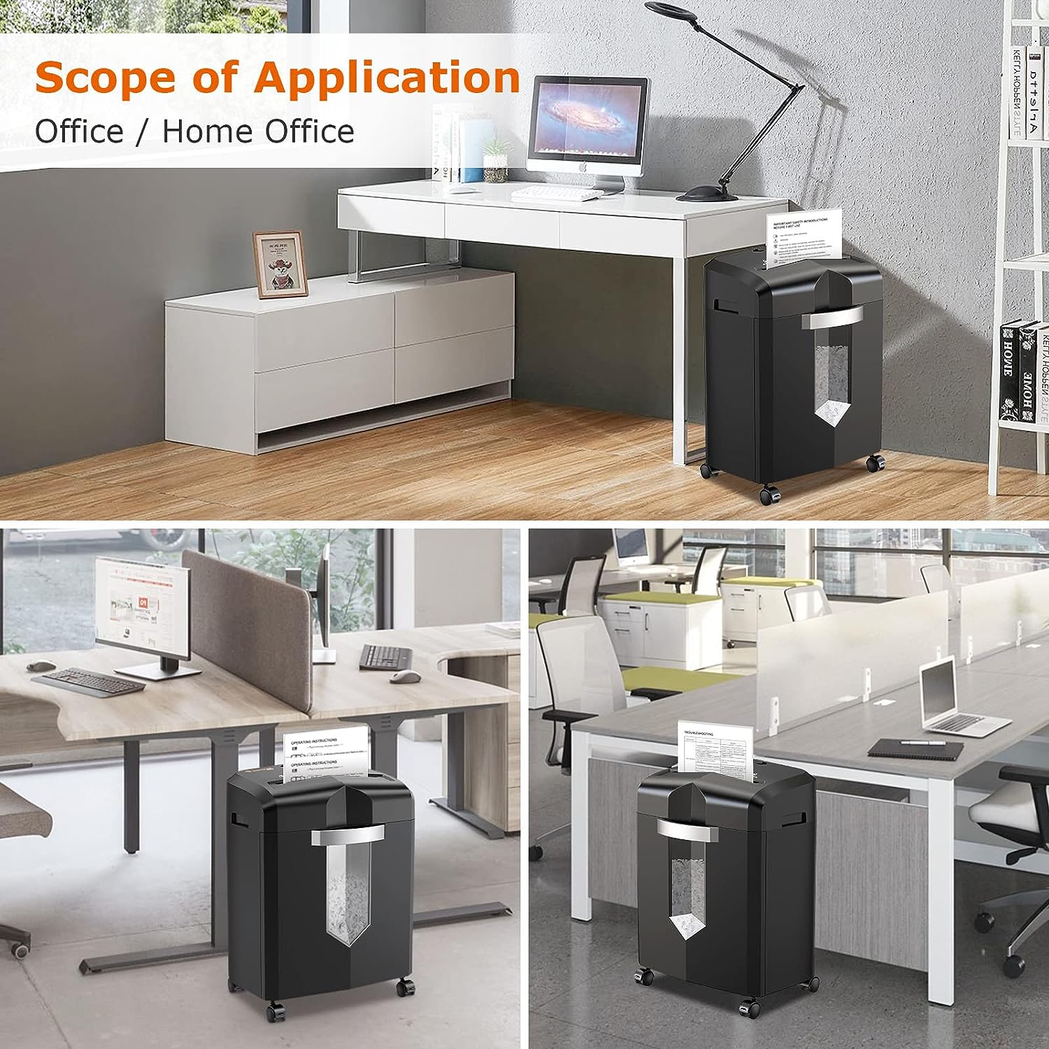 - 【P-4 High Security Level】This heavy duty paper shredder for office use can not only shred 10 sheets at a time into tiny particles of 5/32 x 30/64 inches (4 x 12mm), but also can shred CD, credit cards, mails, staples and clips. Protect your privacy as much as possible.