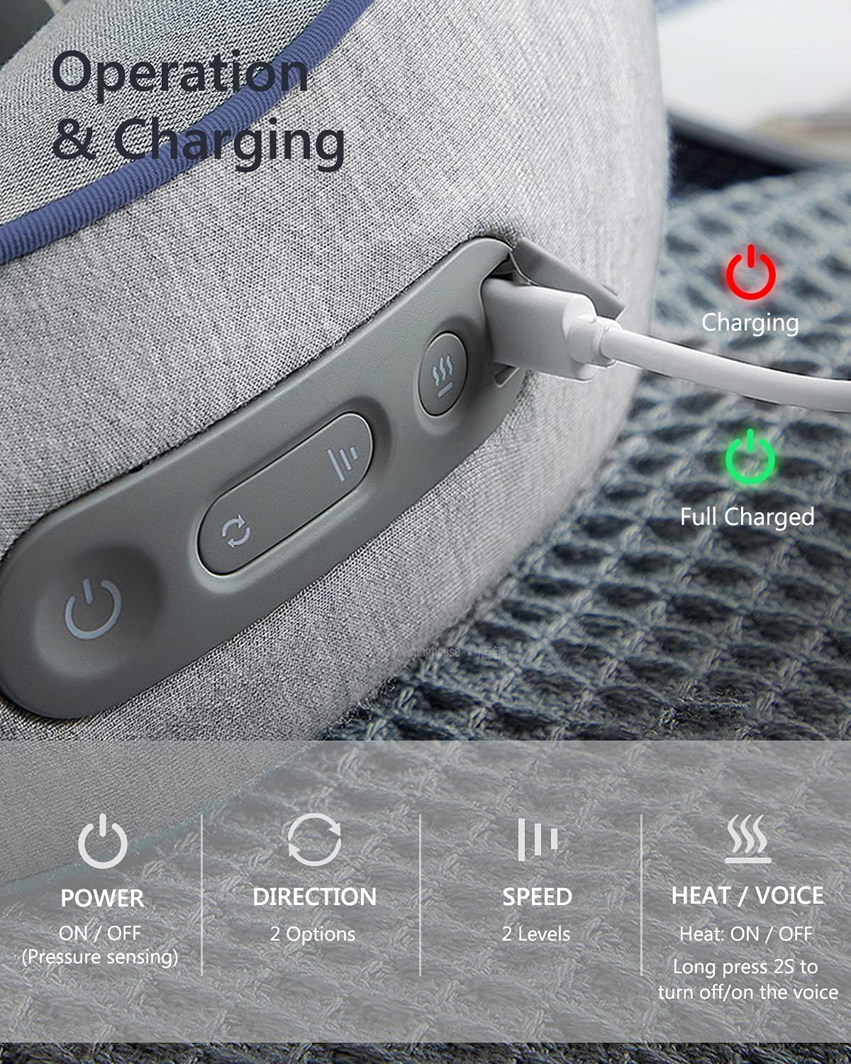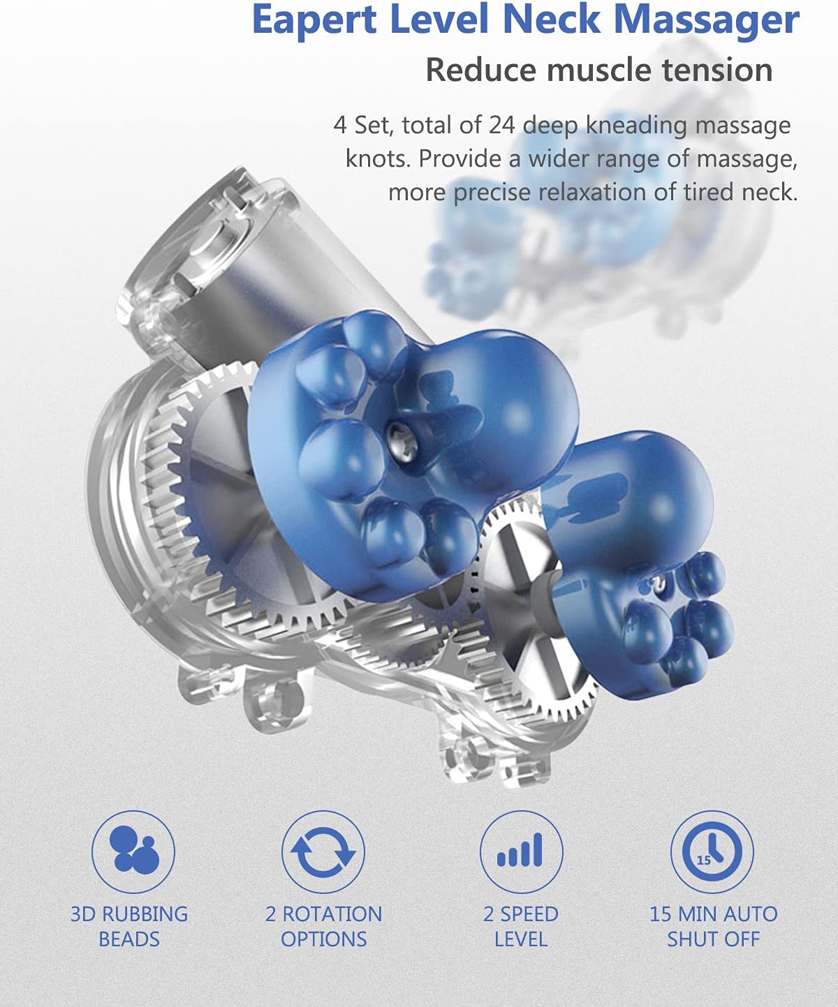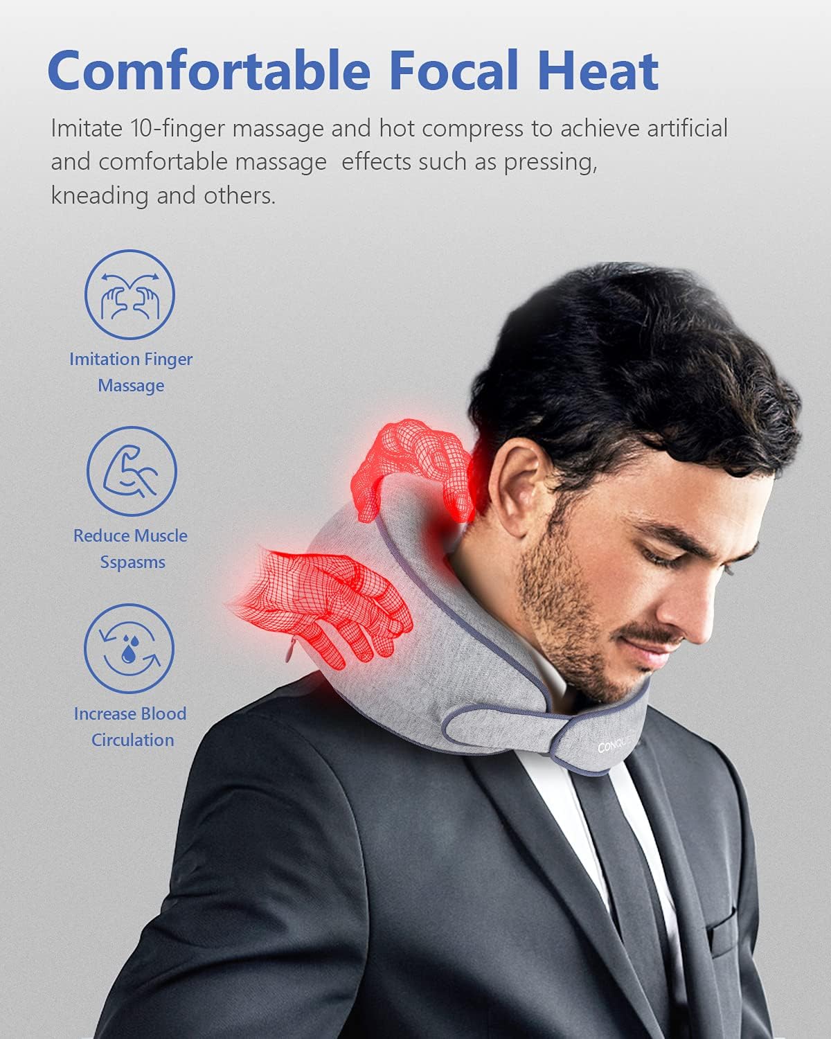 CONQUECO Shiatsu Neck Massager: Neck and Back Massager with Heat - Electric Rechargeable Cordless Cushion Soft 3D Kneading Beads for Pain Relief Cervical Relax, Gift, Home, Office