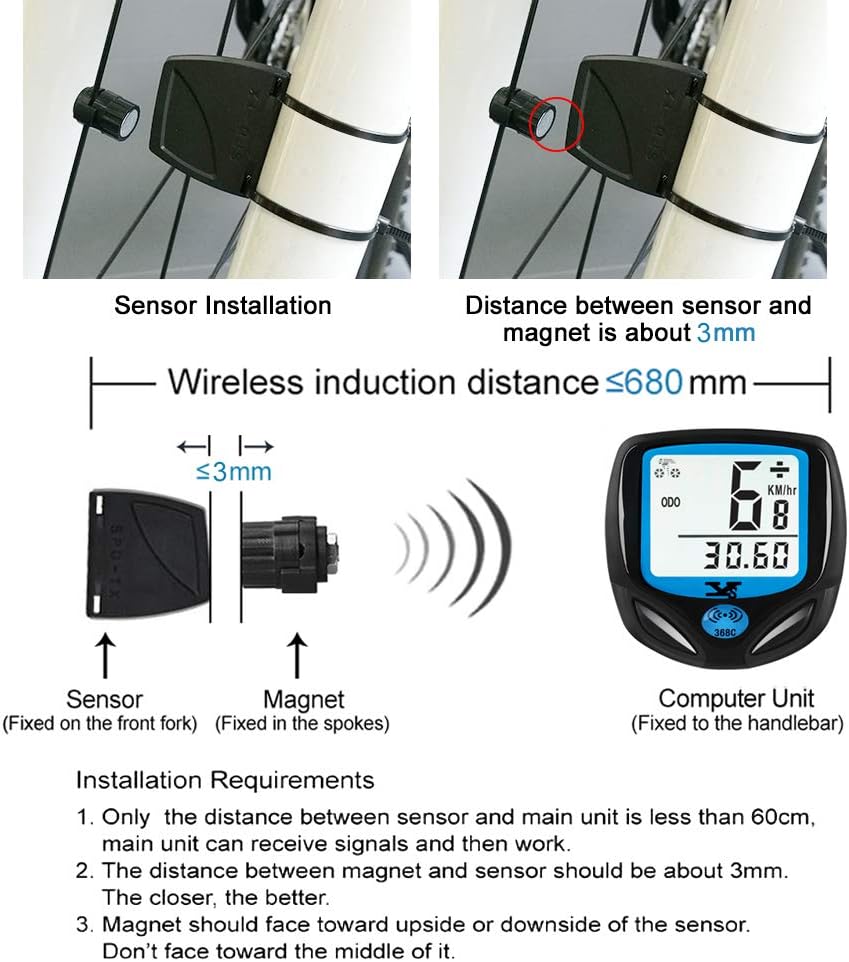 DINOKA Bike Speedometer Waterproof Wireless Bicycle Computer Bike Computer and Cycling Odometer with Automatic Wake-up Multi-Function LCD Backlight Display