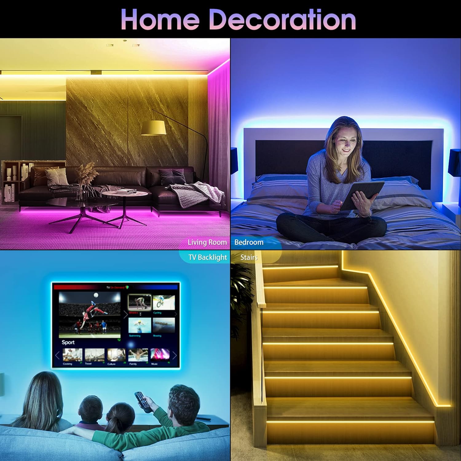 - Safe Use & Easy to Install: low voltage DC 24V powered supply voltage, which is super safe for adults and children. The back of the light strip comes with strong adhesive, just peel off its back layer, and then stick on a dry and flat surface, quite convenient for you.