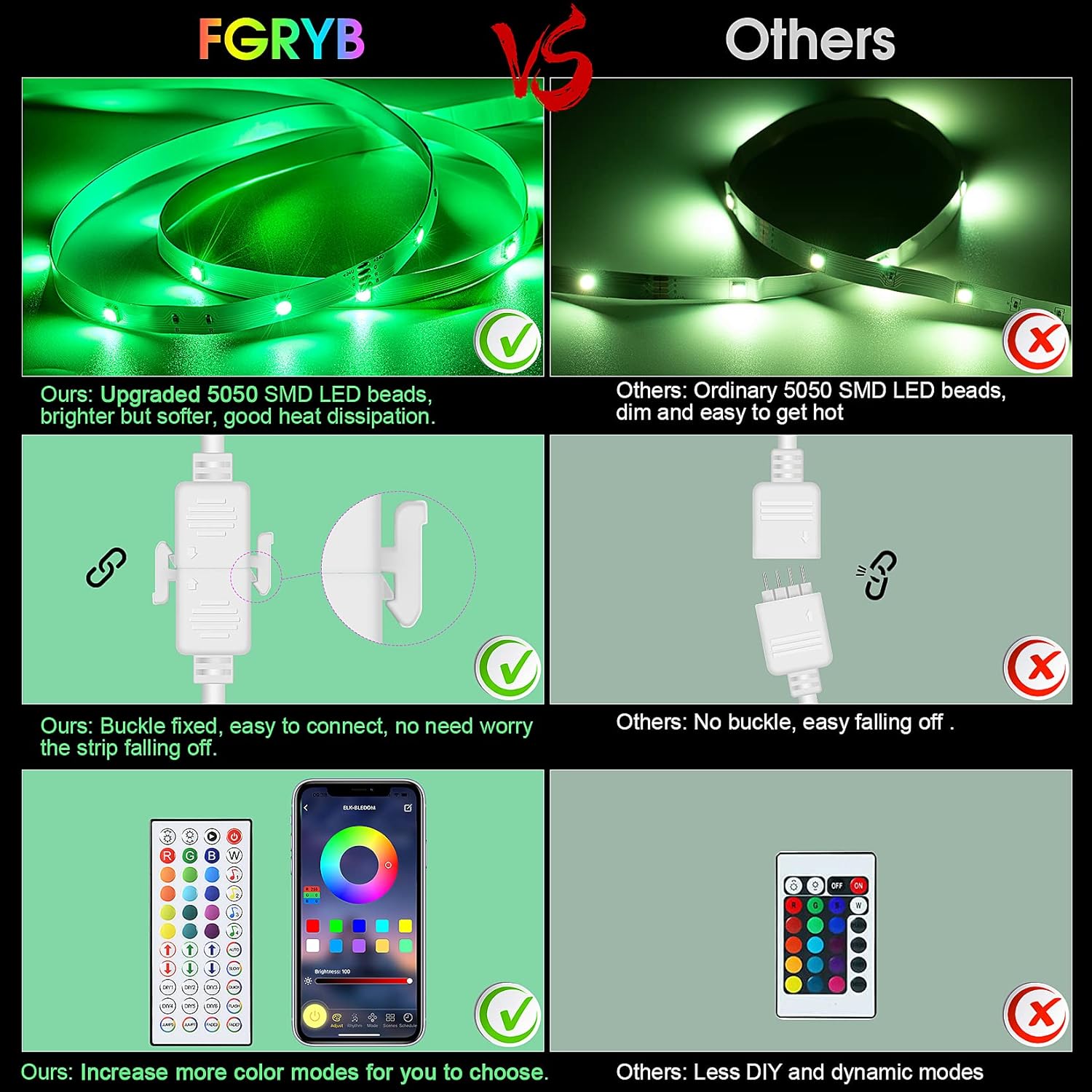 - FGRYB Led Strip Light 10m Music Sync RGB Colour Changing Led Lights for Bedroom with Bluetooth App & Remote Control 24V Power Supply Flexible Lighting Strap for Home Rome Kitchen Decoration
