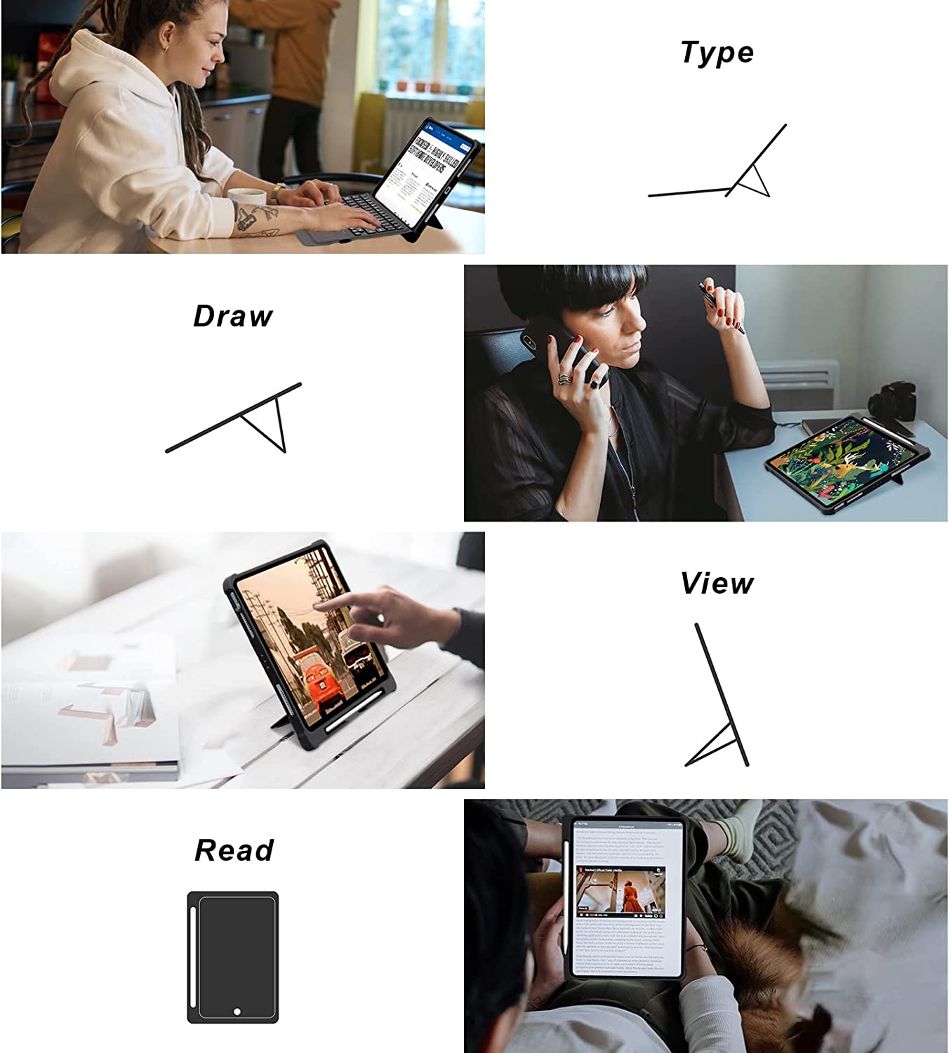 - 【Precise Cutouts & Full Protection】 This versatile and thoughtful tablet case keyboard is specially designed for iPad air 4 10.9" & 11". Precise cutout allows full access to all ports, user interface, sensors, speakers, microphone and cameras. With premium & smooth PU leather cover, TPU inner shell and anti-slip microfiber-lined interior, this keyboard tablet case offers full protection against scratches, bumps or dents and protects your tablet from all sorts of dropping accidents.