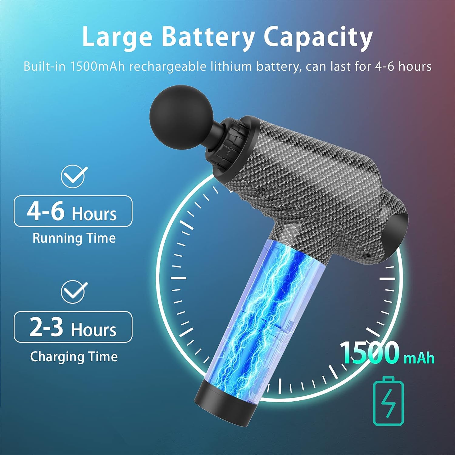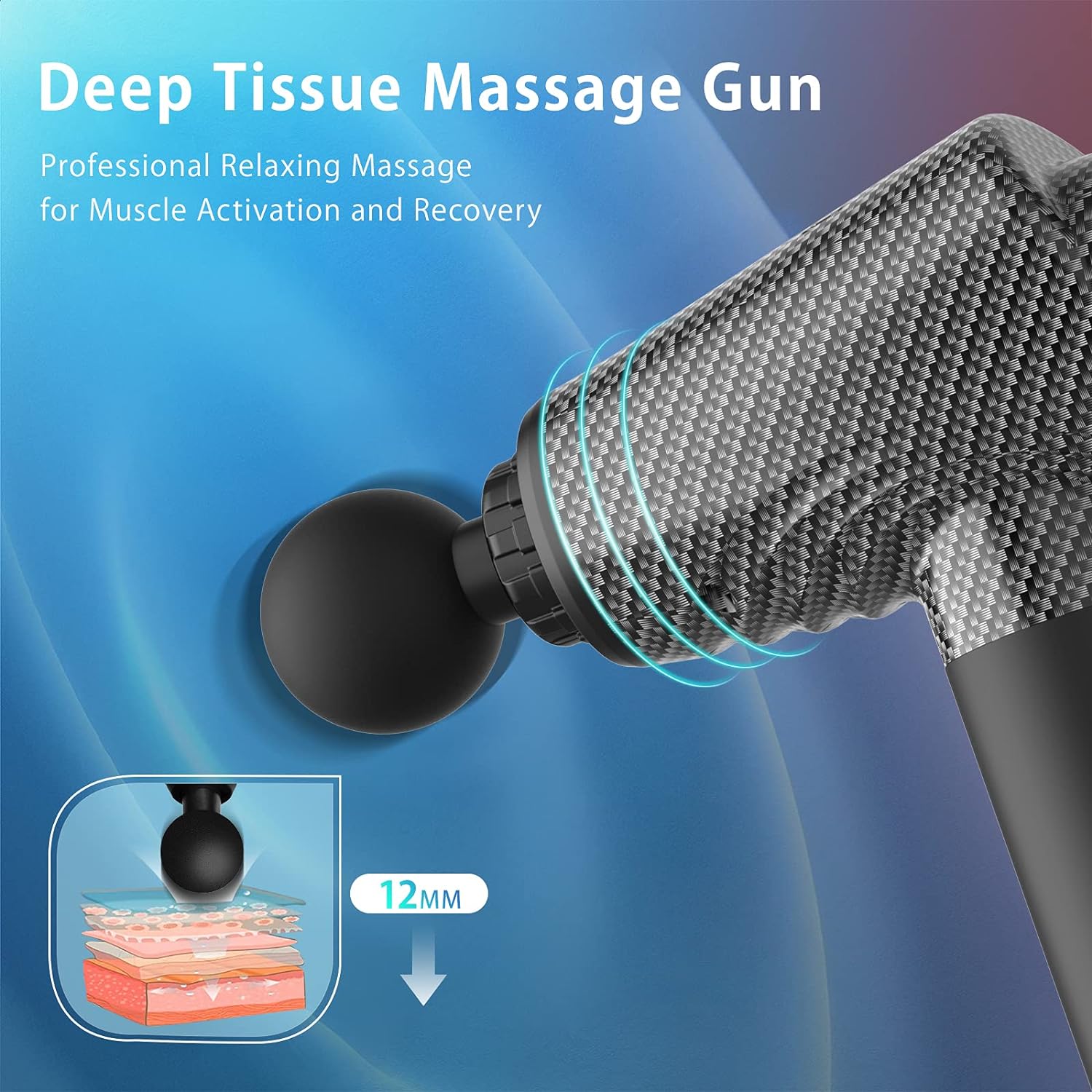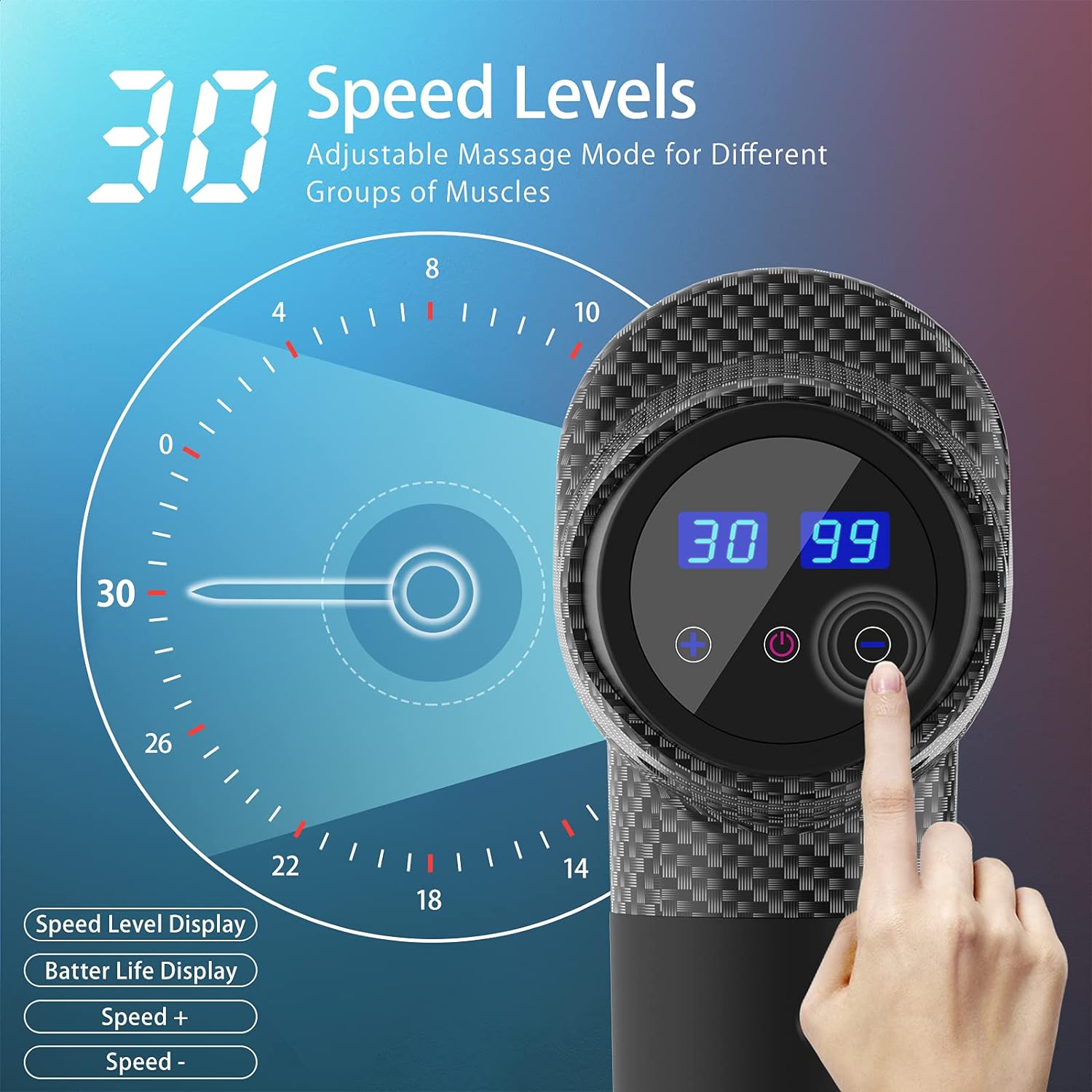 Muscle Massage Gun, Massager Gun Deep Tissue with 30 Adjustable Speeds, Portable Percussion Body Muscle Massager for Pain Relief, 6 Heads Powerful Massage Gun, LCD Touch Screen - Carbon Black