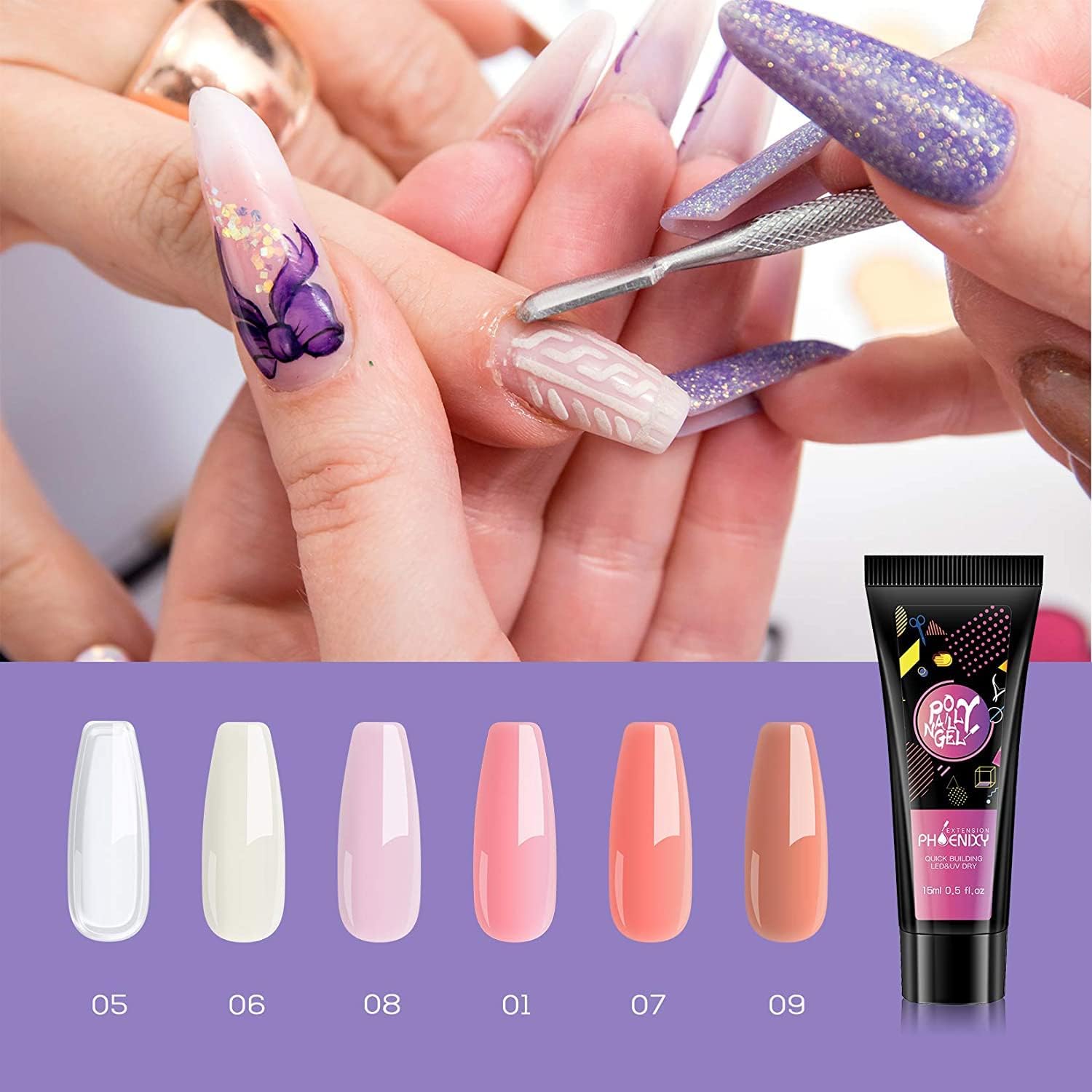 - 【Dry Fast & More Style】Phoenixy poly nail extension gel dry very fast. It's stronger, more flexible , easier to control than other gel. You can apply many beautiful looking by mixing any decorations, simply creating as much brilliant style as you think.