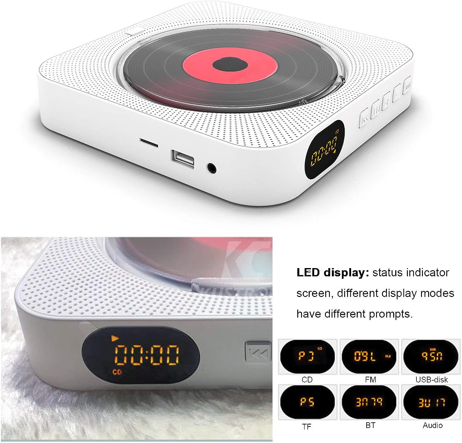 - With LED display screen, it is easy to know the current playback mode. Equipped with CD dust cover, simple white appearance to prevent dust from affecting the sound effect.