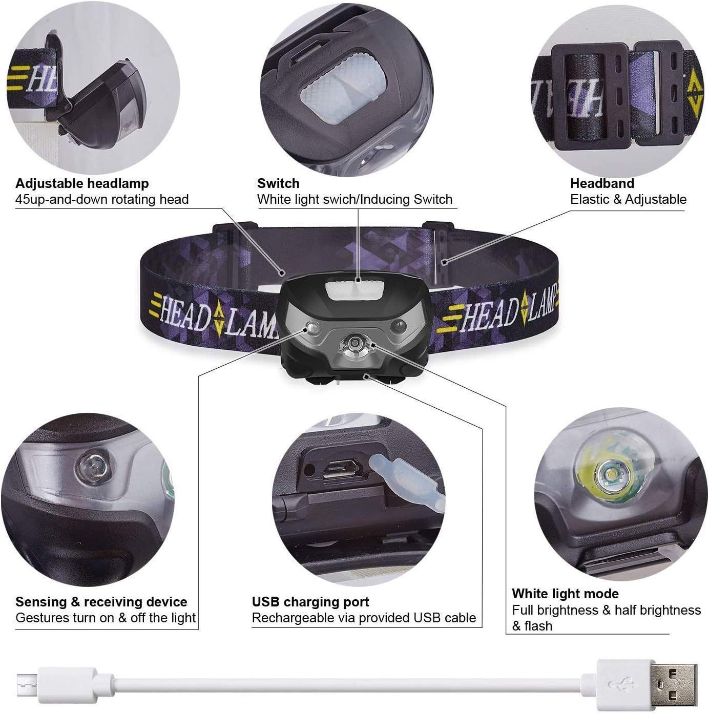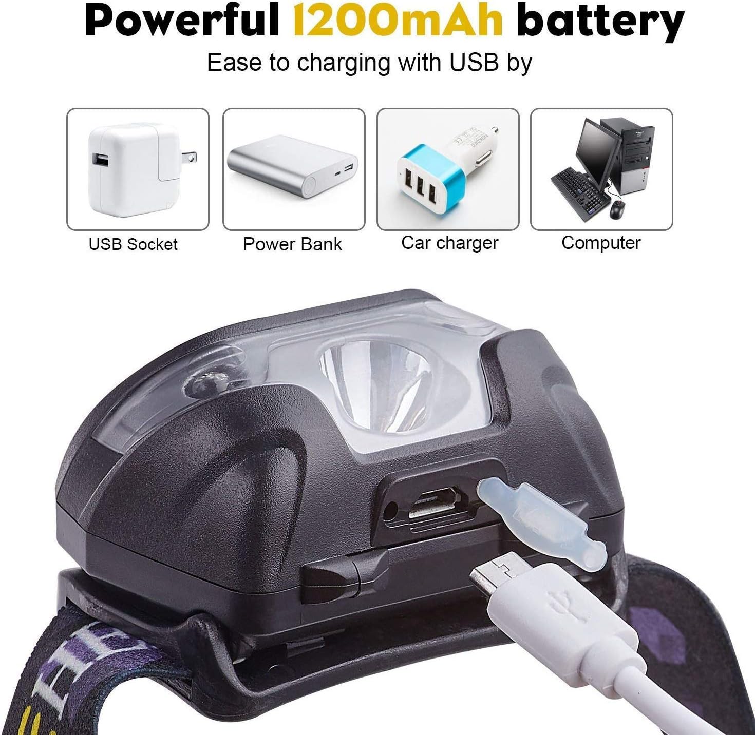 USB Rechargeable Headlamp, TECHVIDA 5 Modes Waterproof Head LED Flashlight, Hands-free LED Head Torch Headlight for Caving Hiking Camping, Fishing, Cycling, Climbing