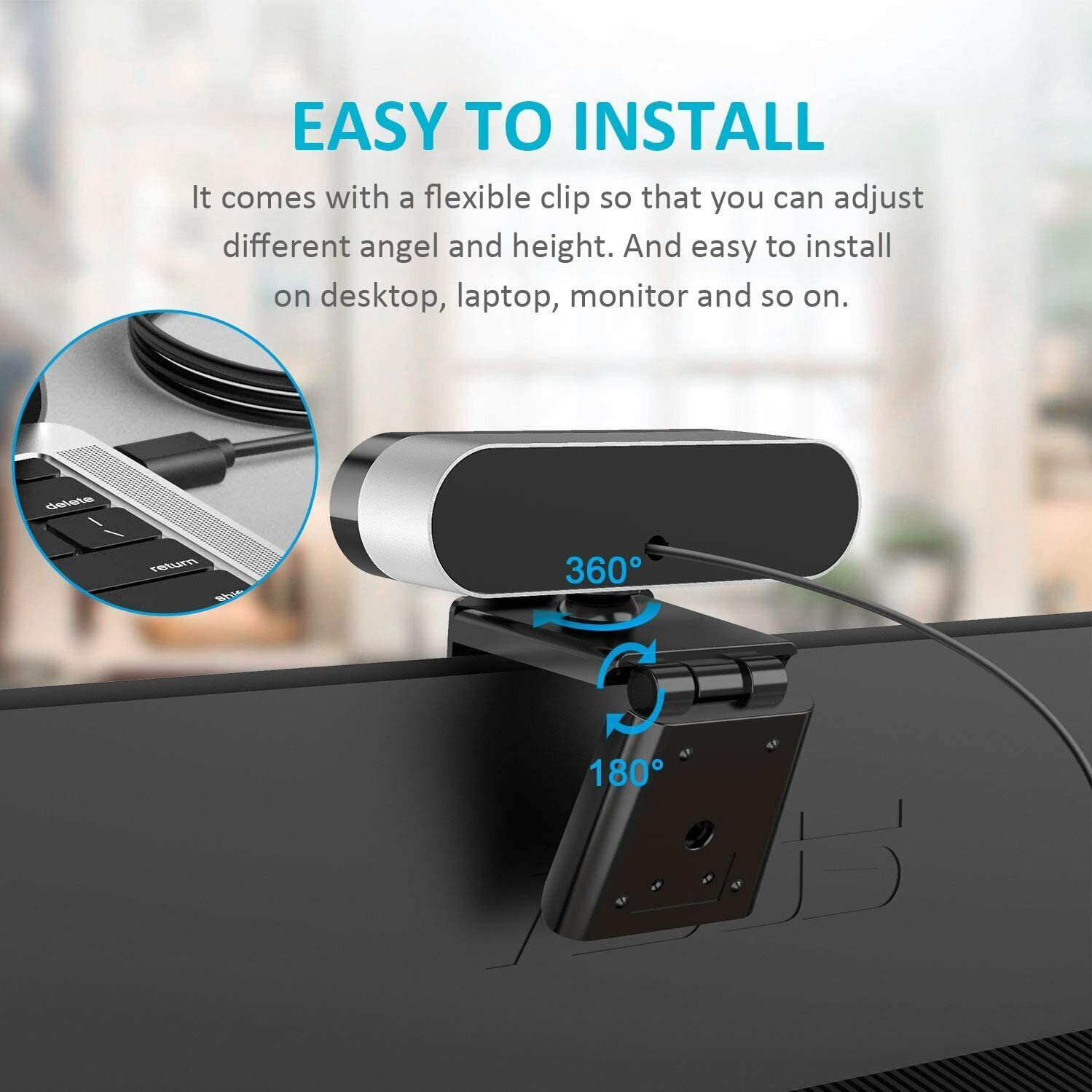 Webcam with Microphone - 1080P HD Aluminium Web Cam for Desktop, Mac, Laptop ,