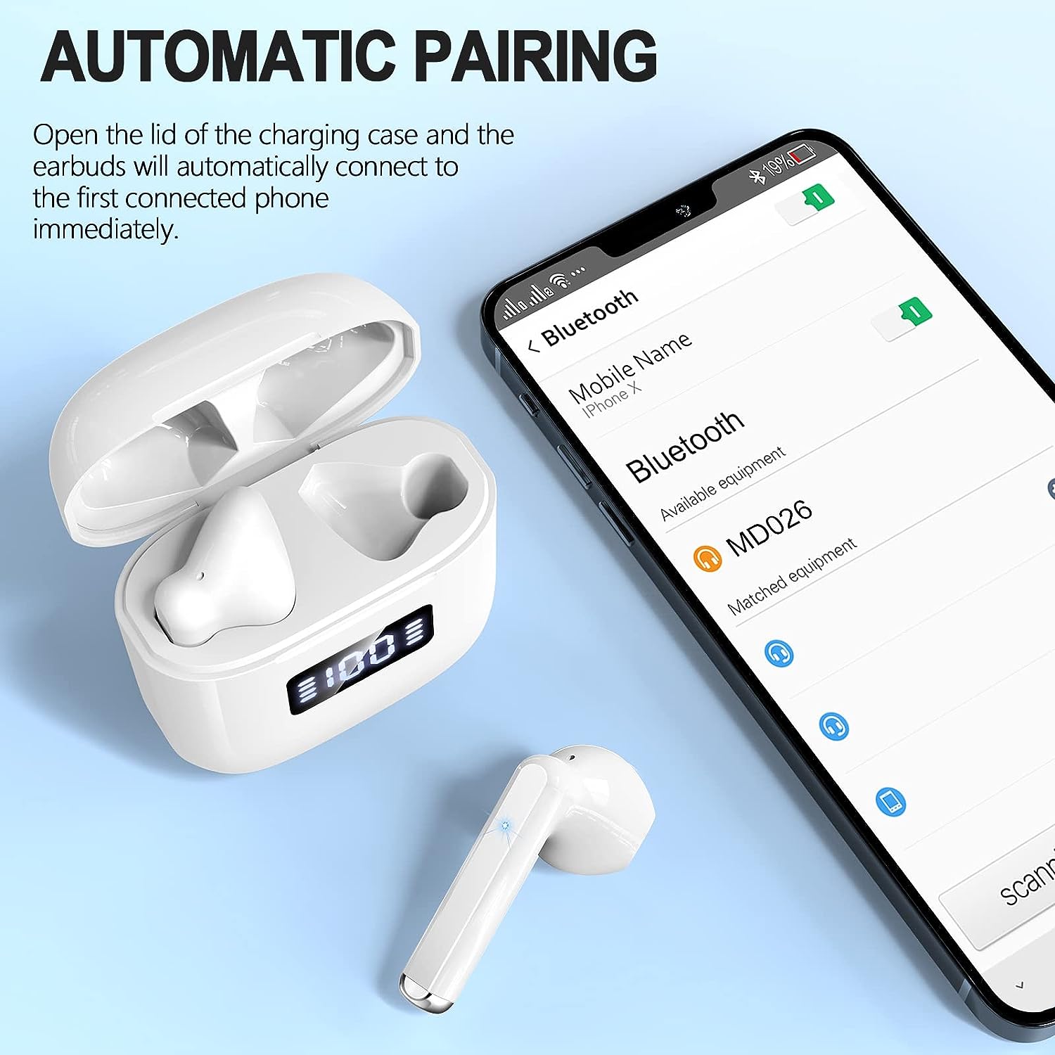 MD026 Wireless Earbuds (White)MD026 wireless earbuds adopt the latest bluetooth V5.3 and noise reduction technology, each earbud is equipped with 2 mics, which can provide you with an unparalleled audio and calling experience.