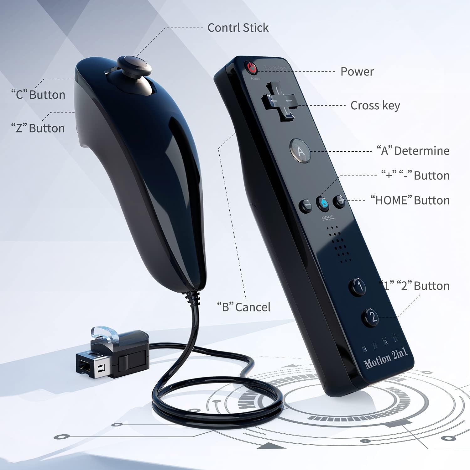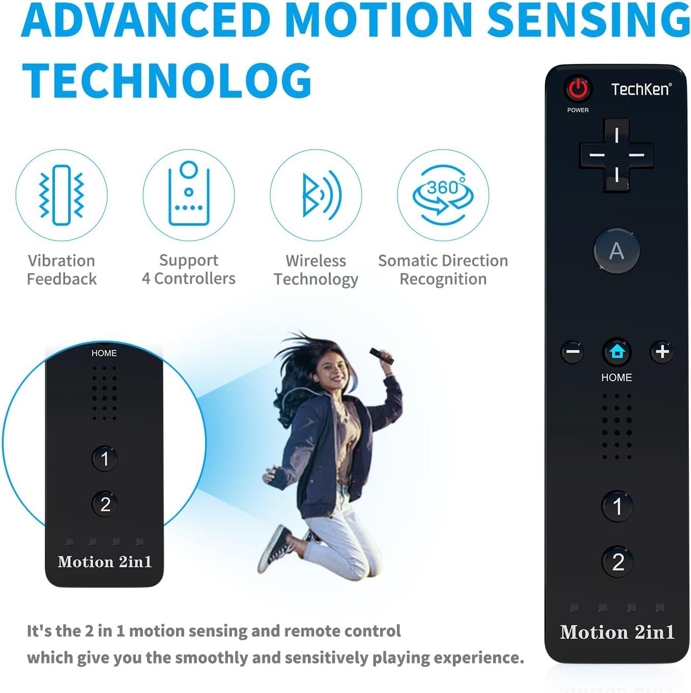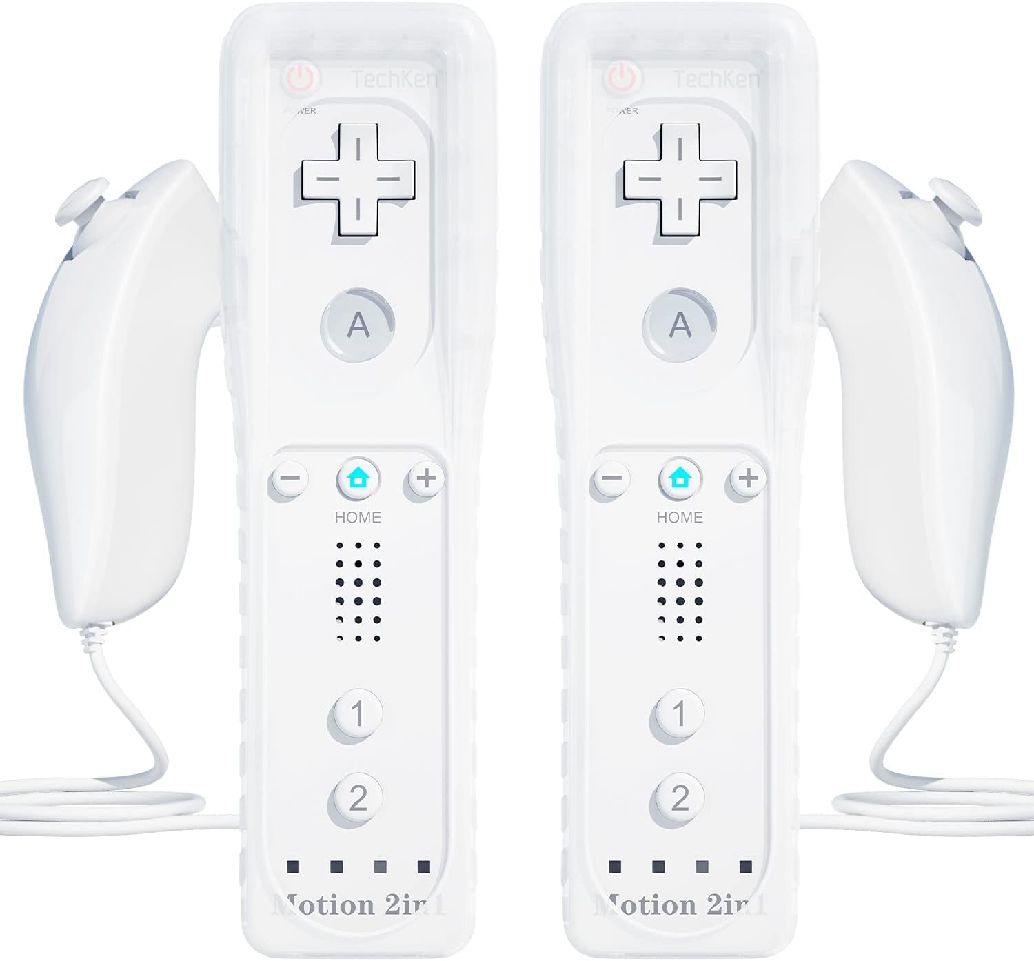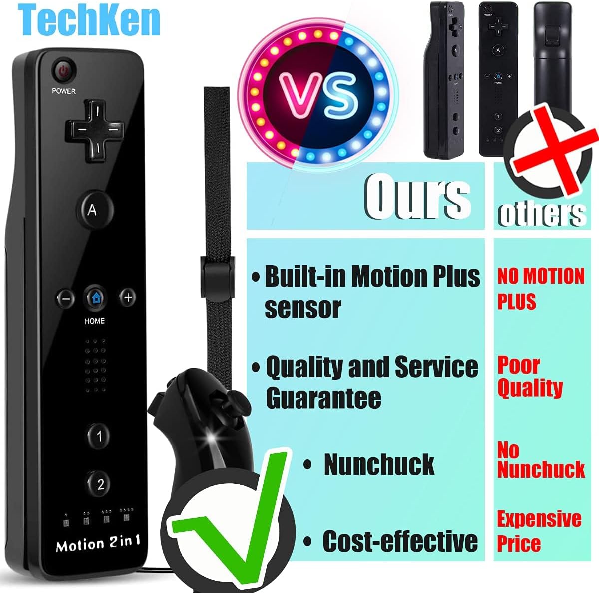 1 Pair Set Of 2 TechKen Controller for Wii with Motion Plus and Wii Nunchuck Controller Wii Remote Control Nunchuk Controller Wii Connection Remote Plus Controller Replacement for Wii/WiiU
