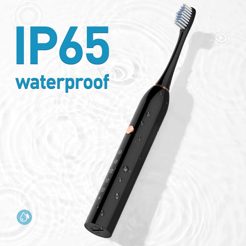 Our sonic electric toothbrush is IPX7 waterproof, so you can rinse it easily or use it in the show