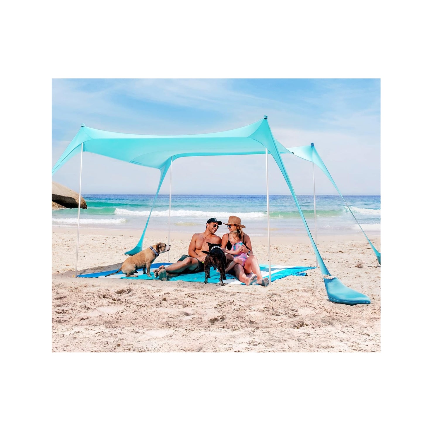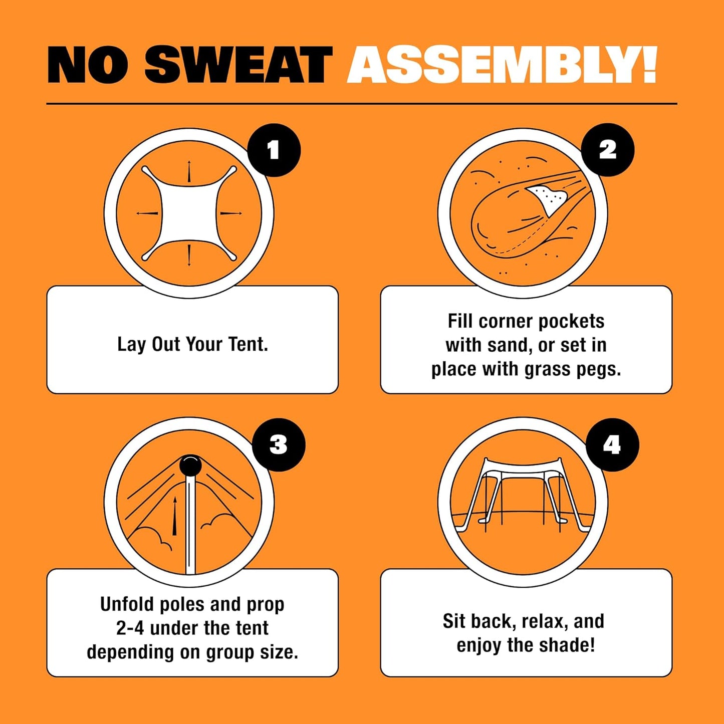 SUN NINJA Beach Tent Shelter with UPF50+ Protection, Includes Sand Shovel, Ground Pegs, Stability Poles, Outdoor Pop Up Shade Canopy for Camping, Fishing, Backyard Fun
