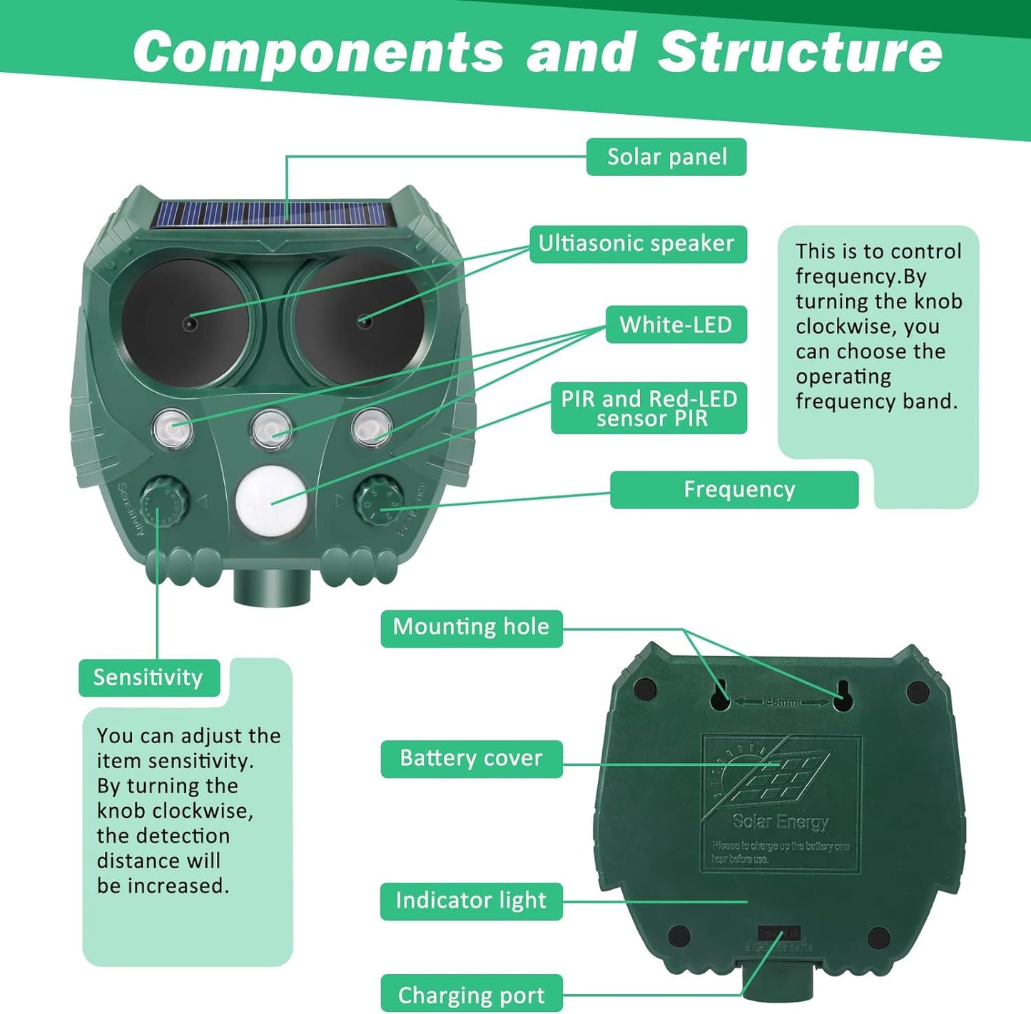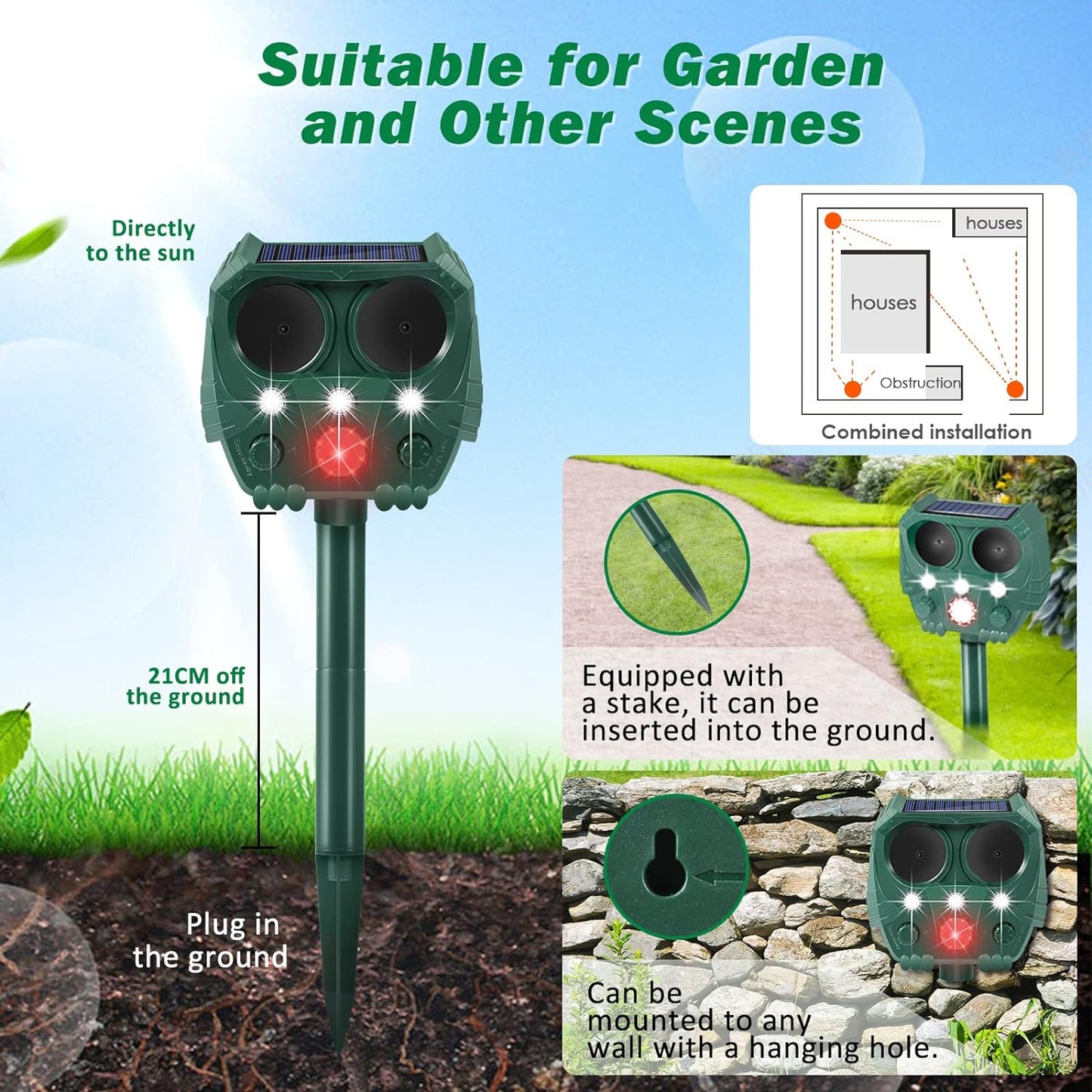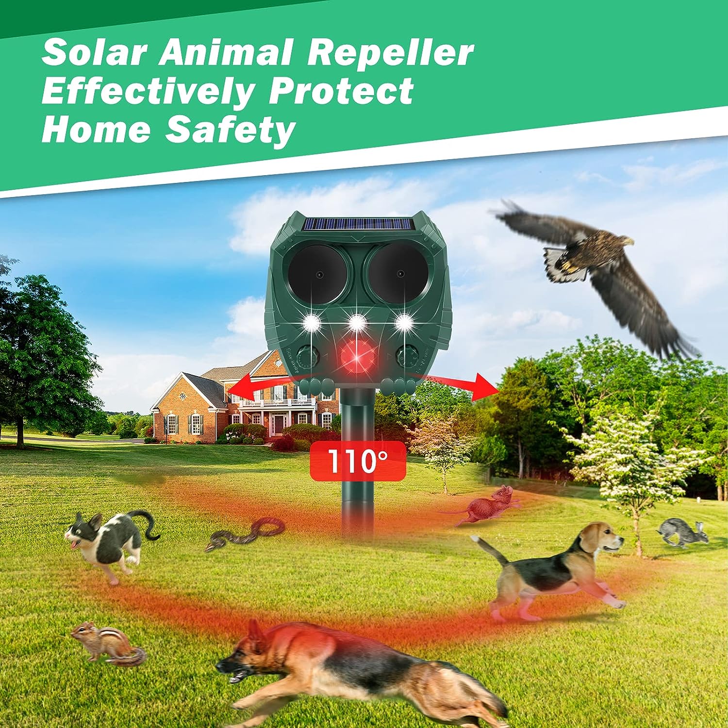 Cat Repellent, Garden Cat Repellent Cat Deterrents, Ultrasonic Animal Repellent, USB & Solar Powered Waterproof, Outdoor Animal Repeller Motion Sensor for Squirrels Cats Dogs Rats
