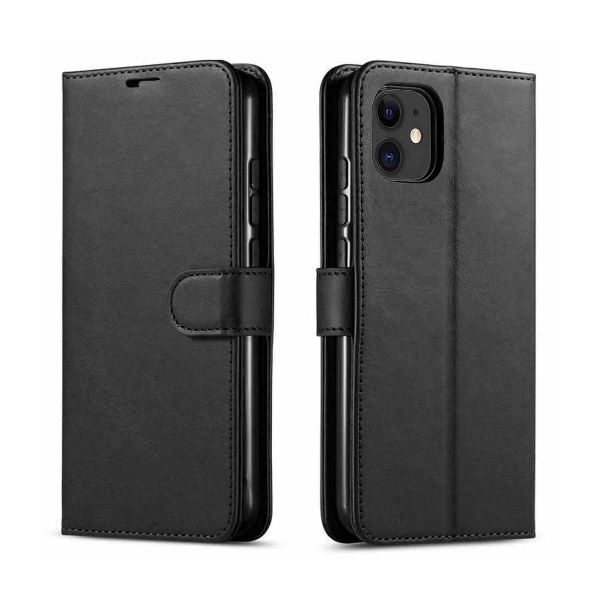 LUCRIN Wallet Case for iPhone 11 Black - Smooth Leather