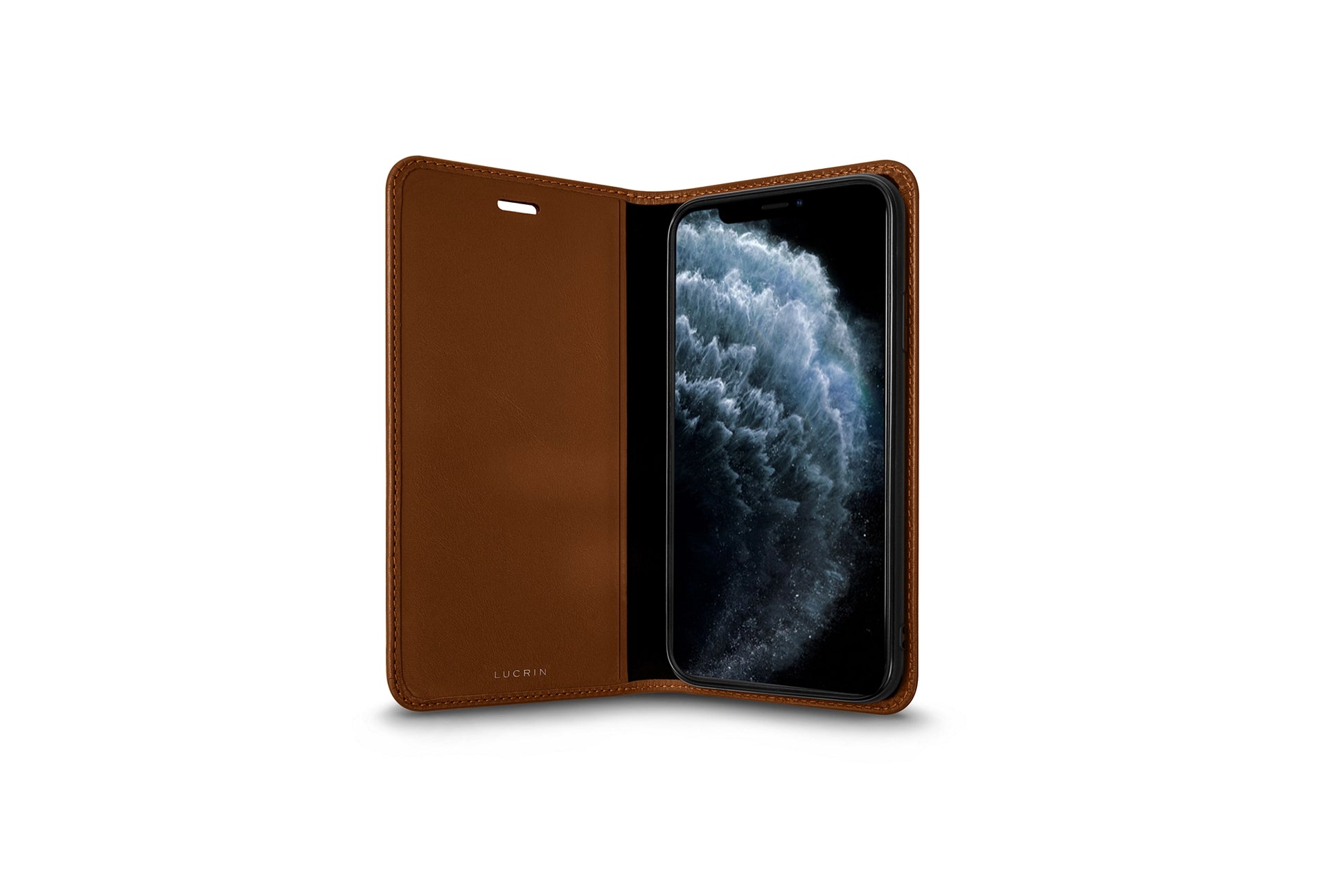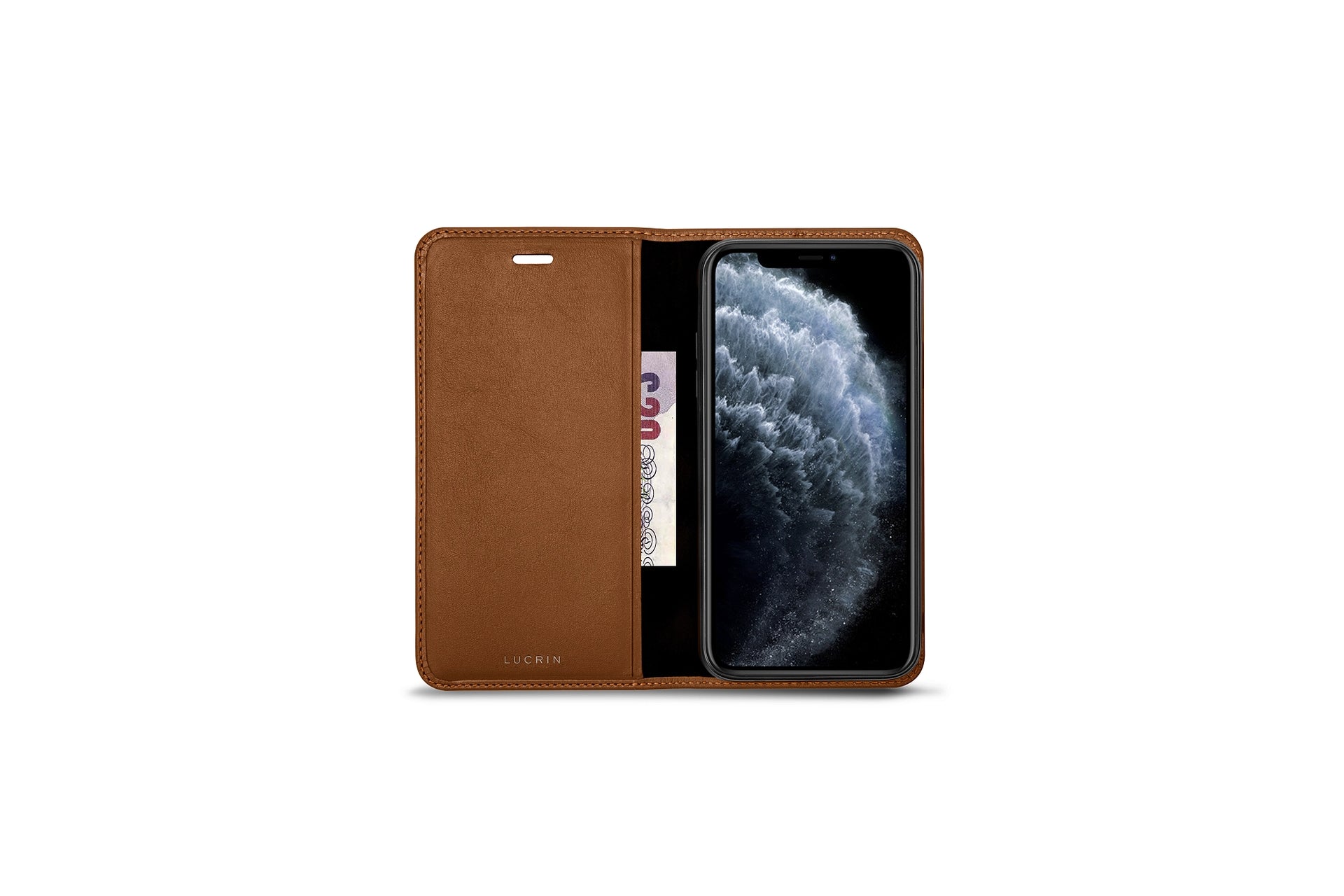 LUCRIN Wallet Case for iPhone 11 Pro Black / Brown - Smooth Leather