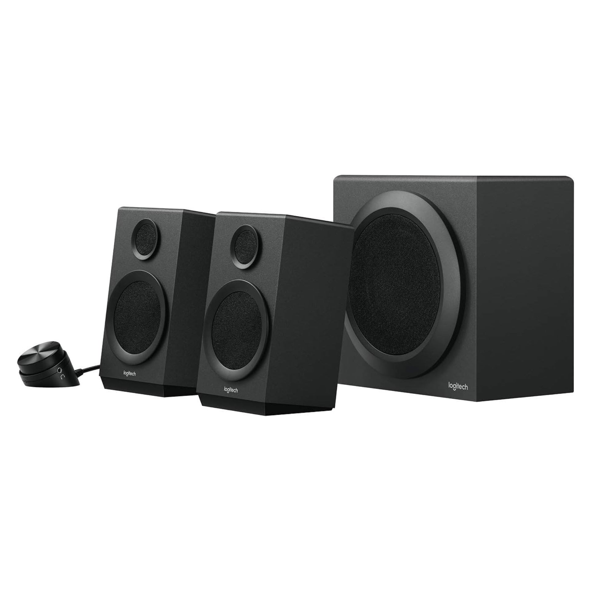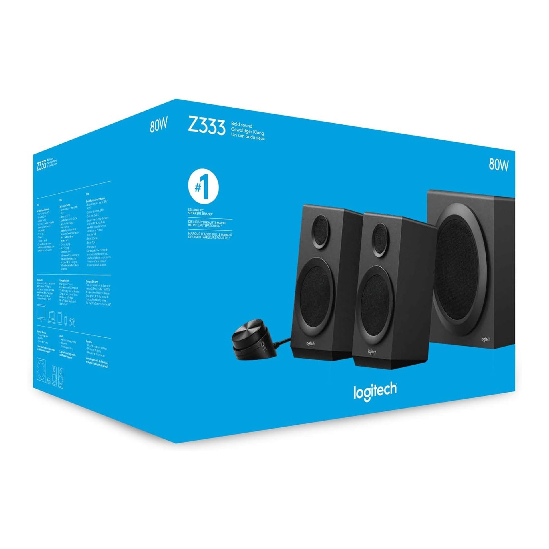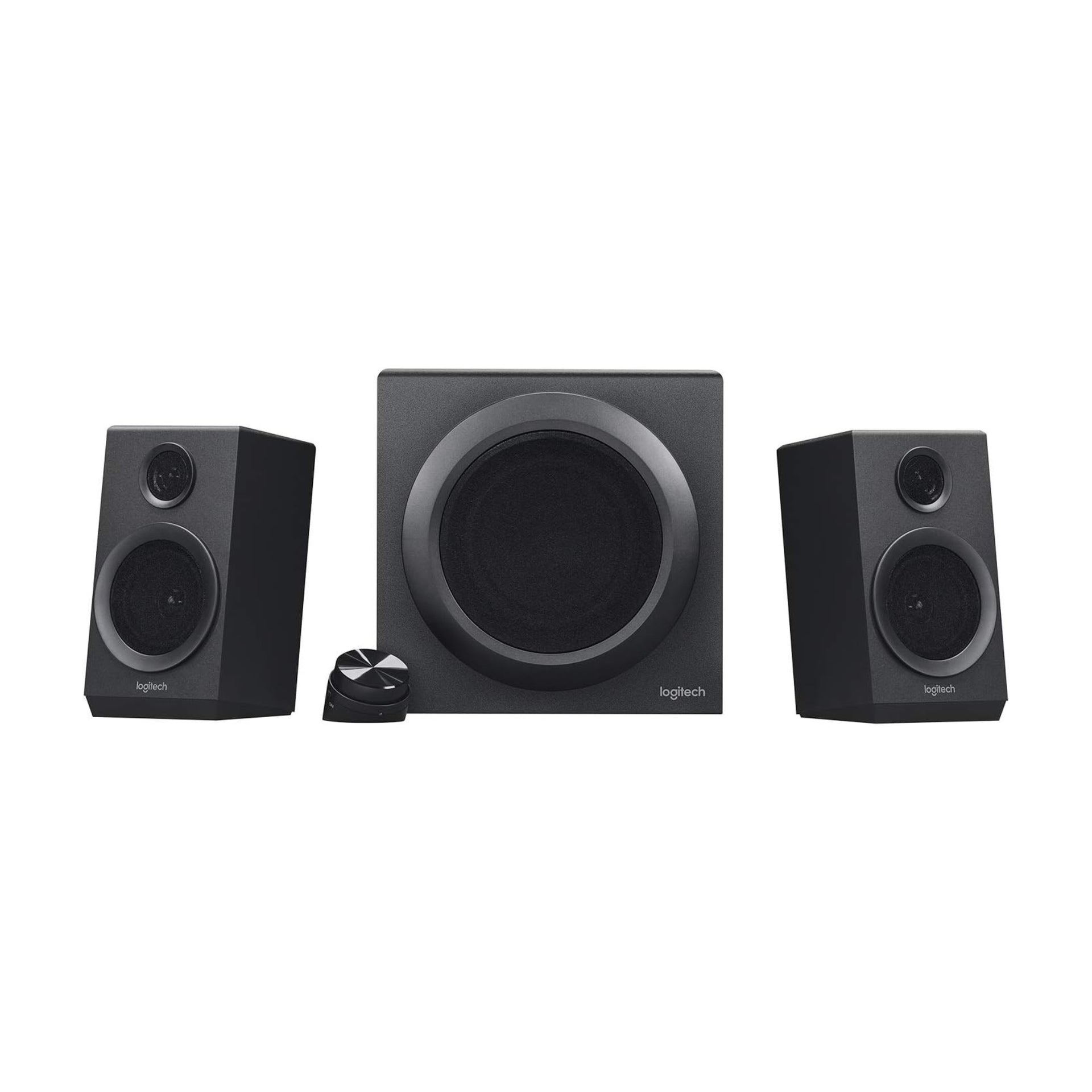 - Logitech Z333 2.1 Speakers – Easy-access Volume Control, Headphone Jack – PC, Mobile Device, TV, DVD/Blueray Player, and Game Console Compatible, Black