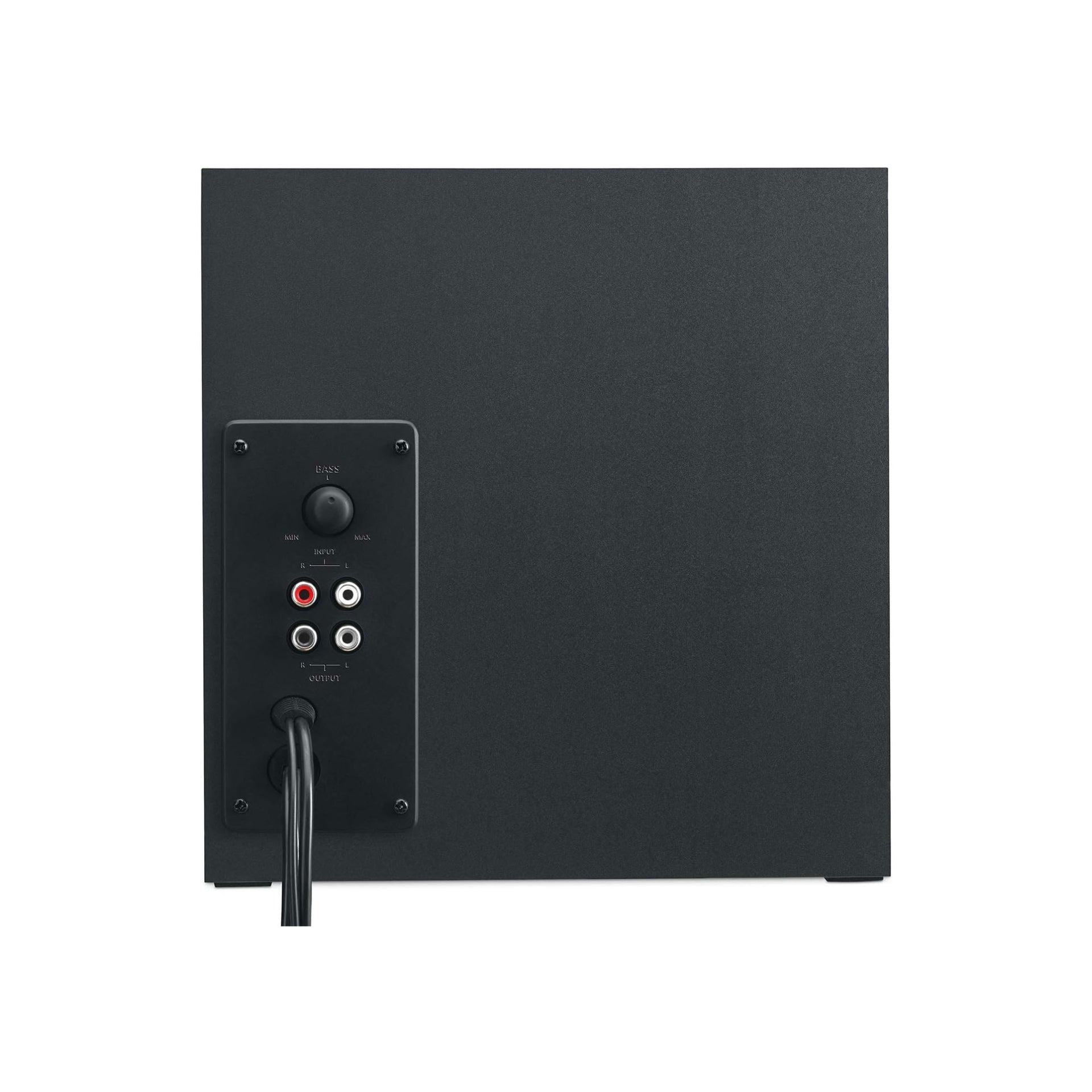 - Adjustable bass control: Quickly boost the bass with a turn of the on-subwoofer control knob.