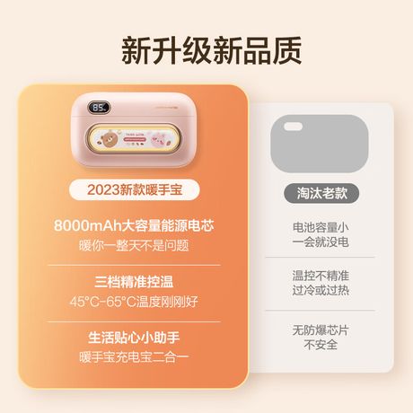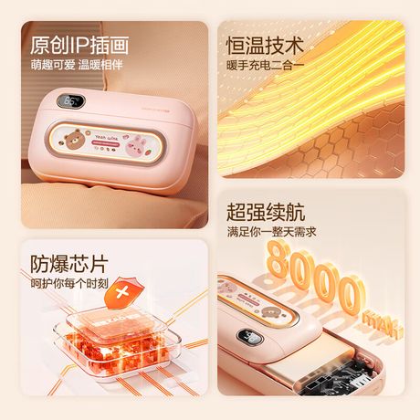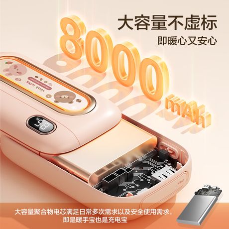 Portable Hand Warmer, With 8000mah Power Bank Hand Heater Pwer Bank, Pocket Size USB Rechargeable Hand warmers, Safety Protection and 3 Levels, Quick Heating Hand Heaters, Poer Bank Function