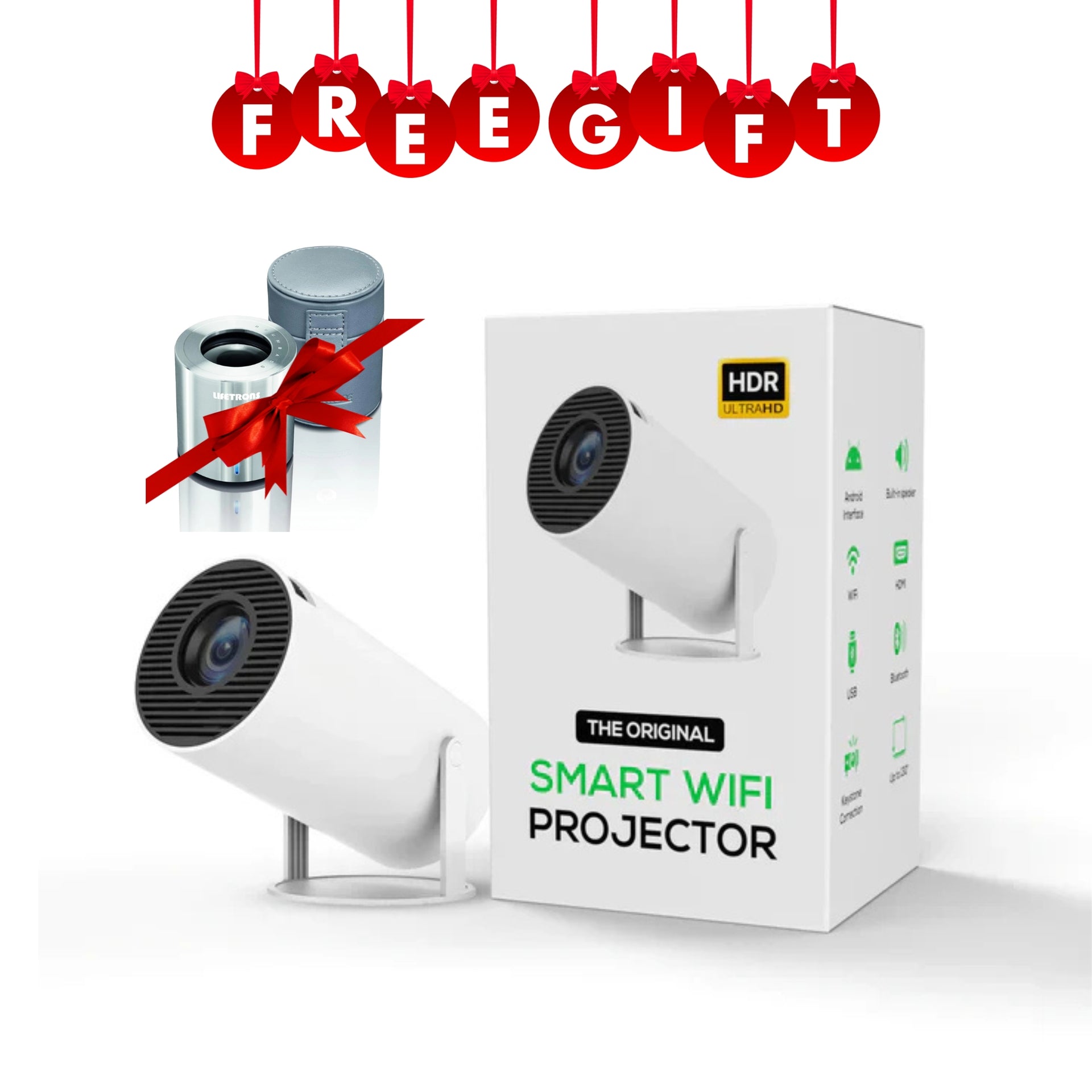 ihero WIFI Smart Mini Projector, Portable, 180 Degree, HDR ULTRA HD 1080P, Dual-Band WiFi 6 5G, Bluetooth 5.0, Android 11, 130 Inch Display, For Phone/PC/Laptop/PS5/Stick, 1080 Home Cinema Projector, HDMI