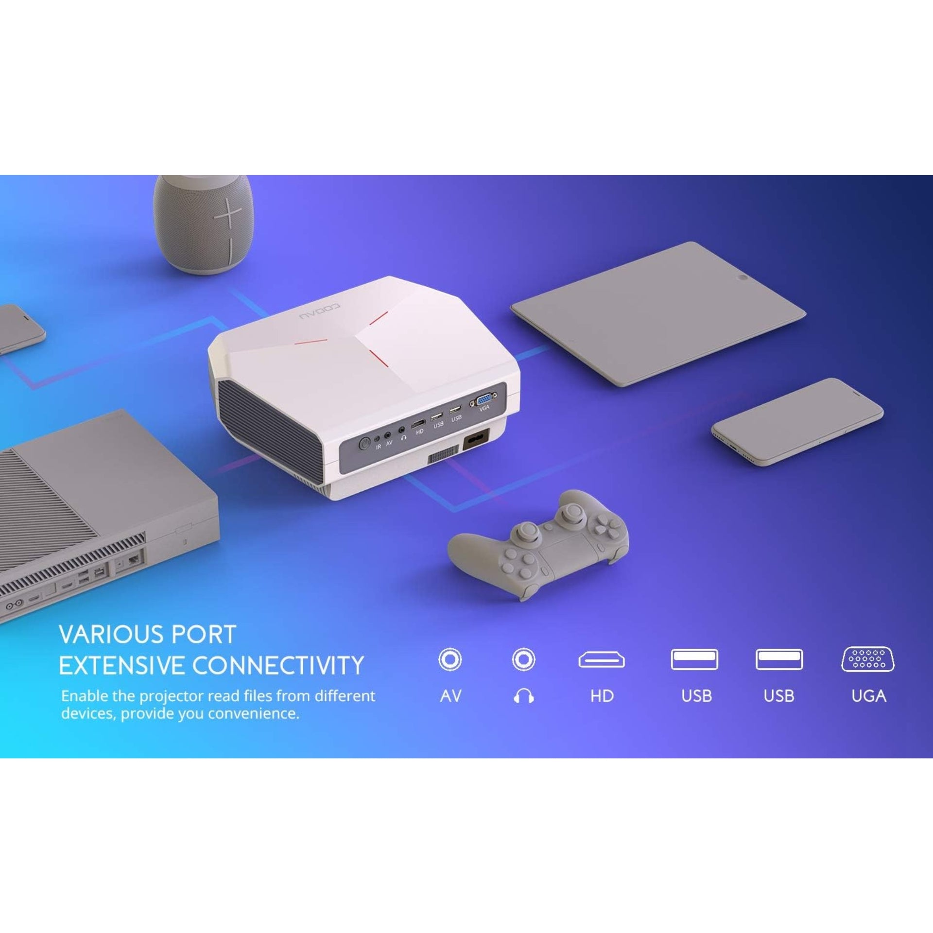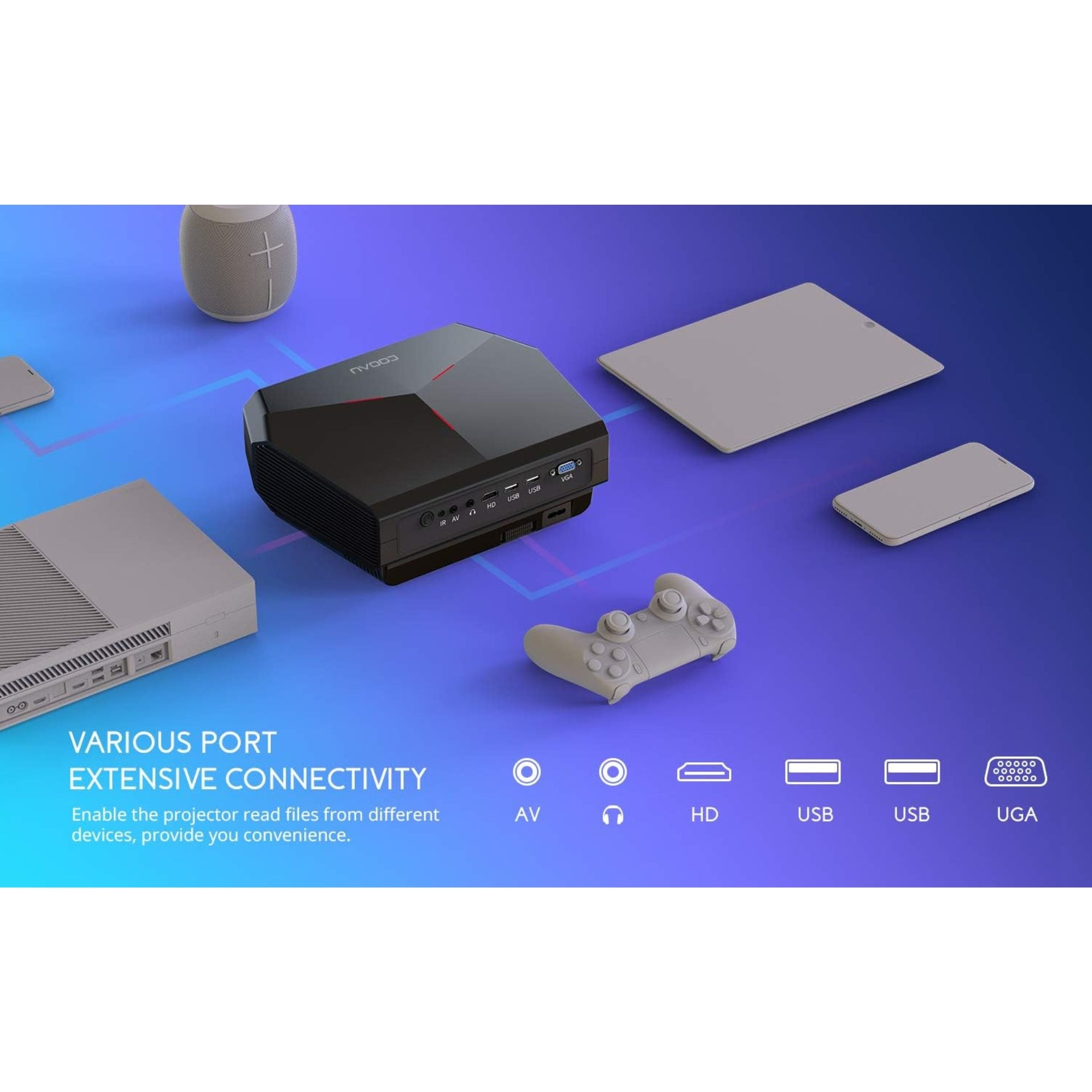 • 🎦 Excellent Sound & Wide Compatibility ---- With the built-in HiFi speakers, the powerful sound will also be great for you to enjoy your movie and gamming time. And the projector has complete ports such as USB / HDMI / VGA / AV. You can connect it with various peripheral devices such as TV stick / TV box / PC / smartphone / DVD play / USB stick / Laptop / PS4 / X-Box etc.