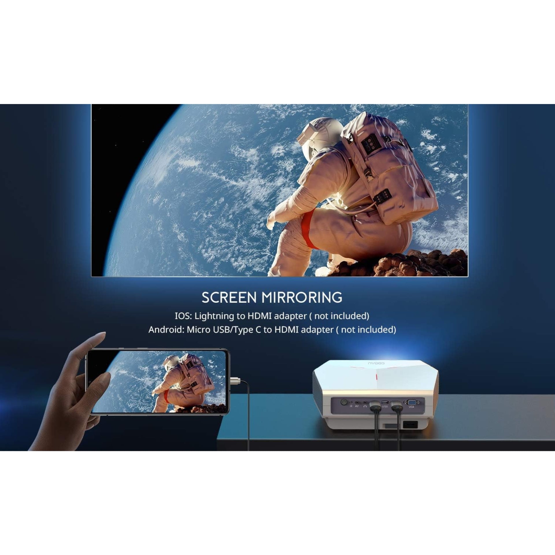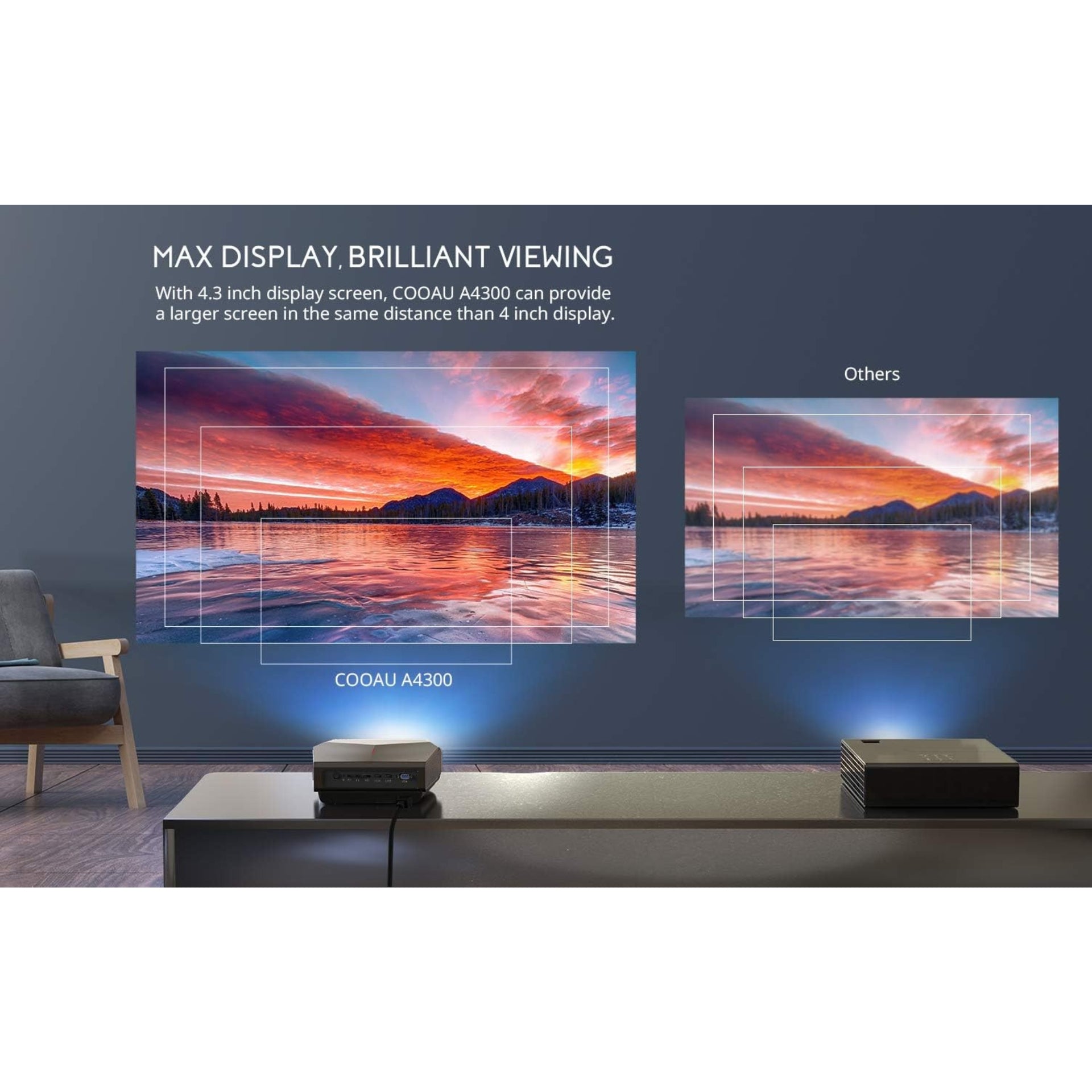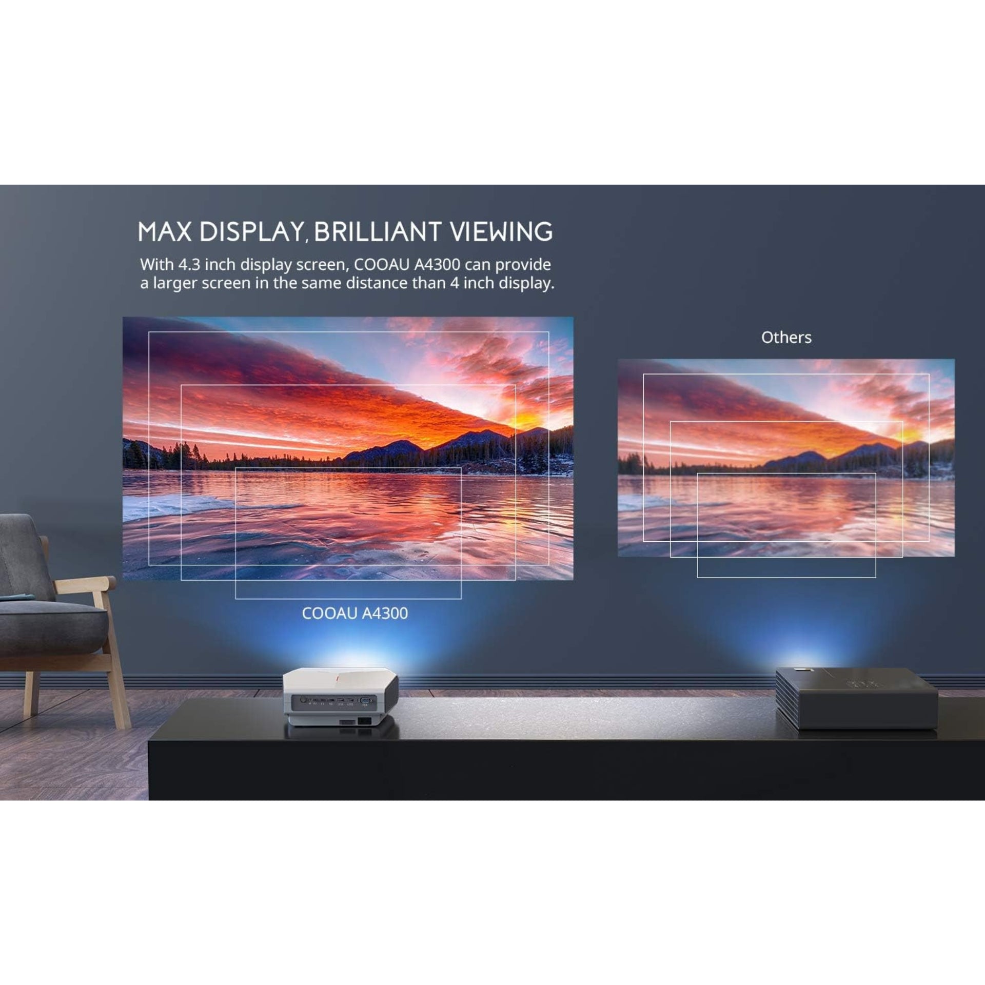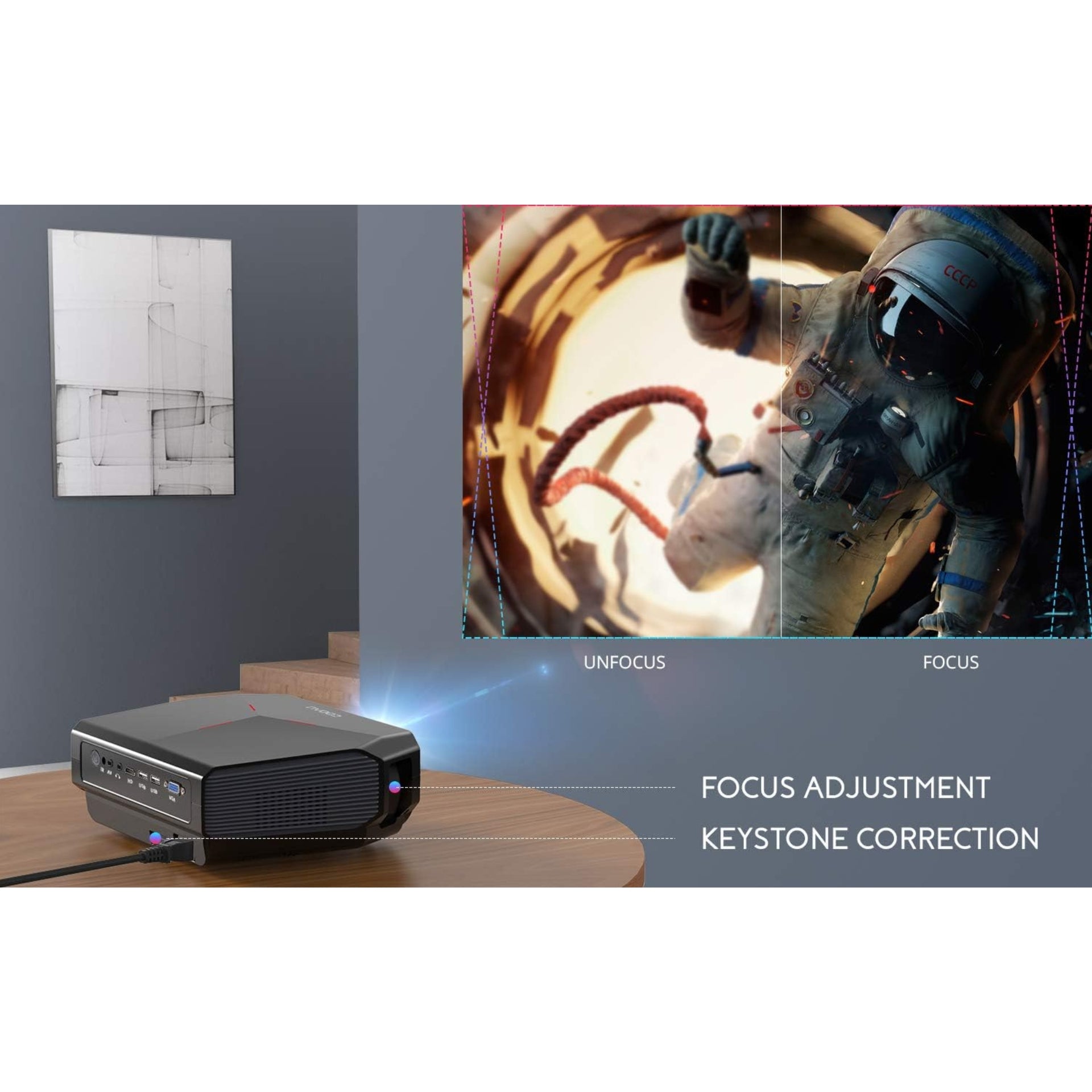 • 🎦 Keystone Correction & Smartphone Connecting ---- Besides the easily focusing design, the movie projector has ±15° Keystone correction as well. Simply rotate the focusing ring and slide the bar behind the projector to get your perfect display. COOAU A4300 projectors also support Mirror Function. You can connect your smartphone to this projector to easily get a larger screen to watch the videos online.