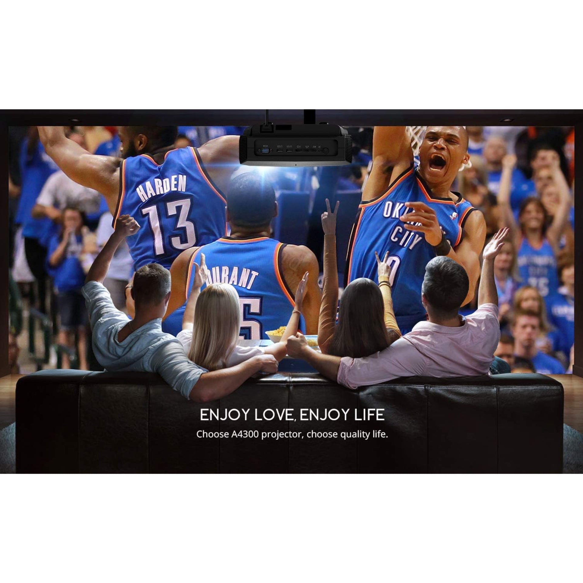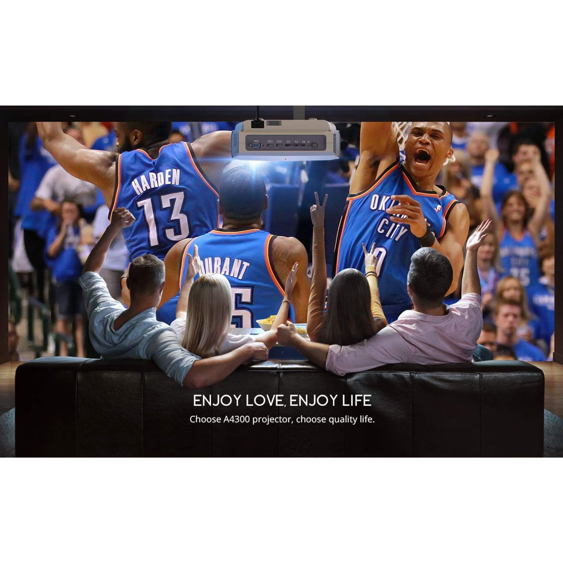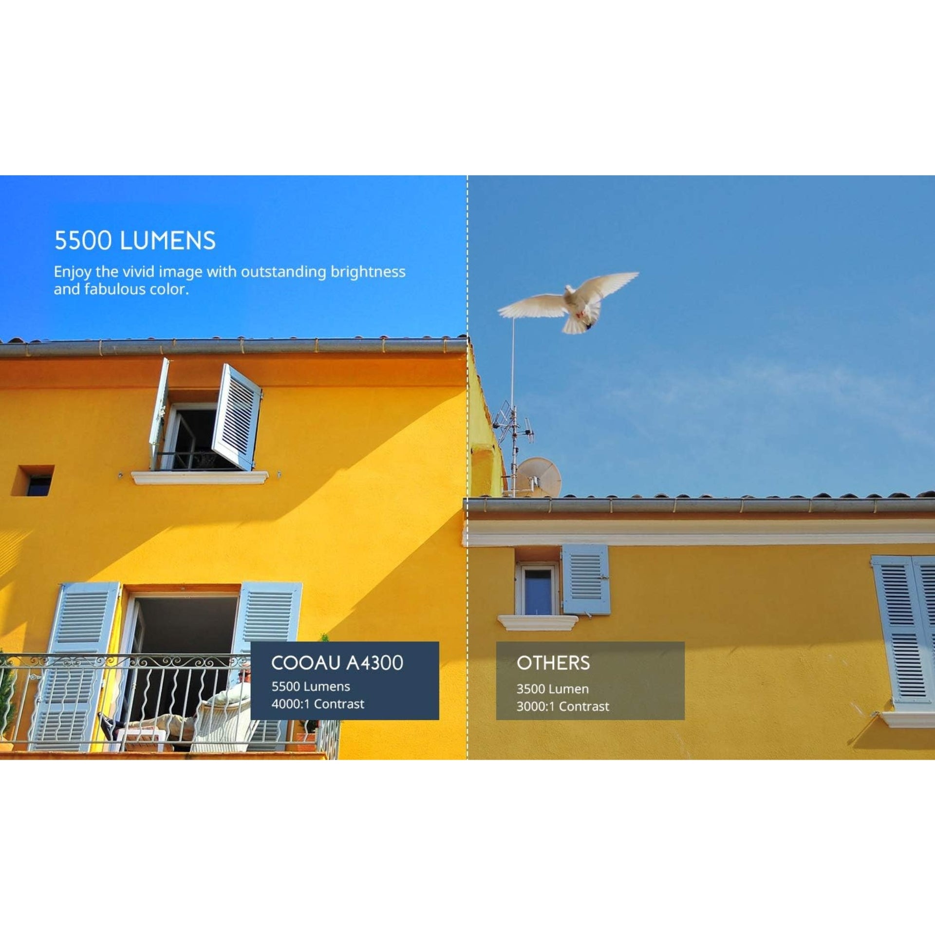 • 🎦 High Brightness & Quality Image ---- With the updated LED lighting source technology, this 5500 lumens home projectors can show bright screen with fantastic image clarity. A4300 movie projector supports up to 1080P HD graphics (native resolution:1280*720P), and support USB, VGA, HDMI, AV connecting & multiple formats playing. Choose A4300, easily build a home theater! COOAU provides a lifelong maintenance service for this projector. Any problems, just message us, easily solve it in 24 hours.