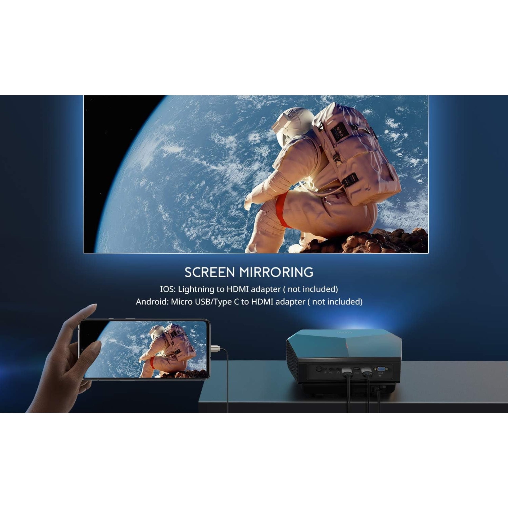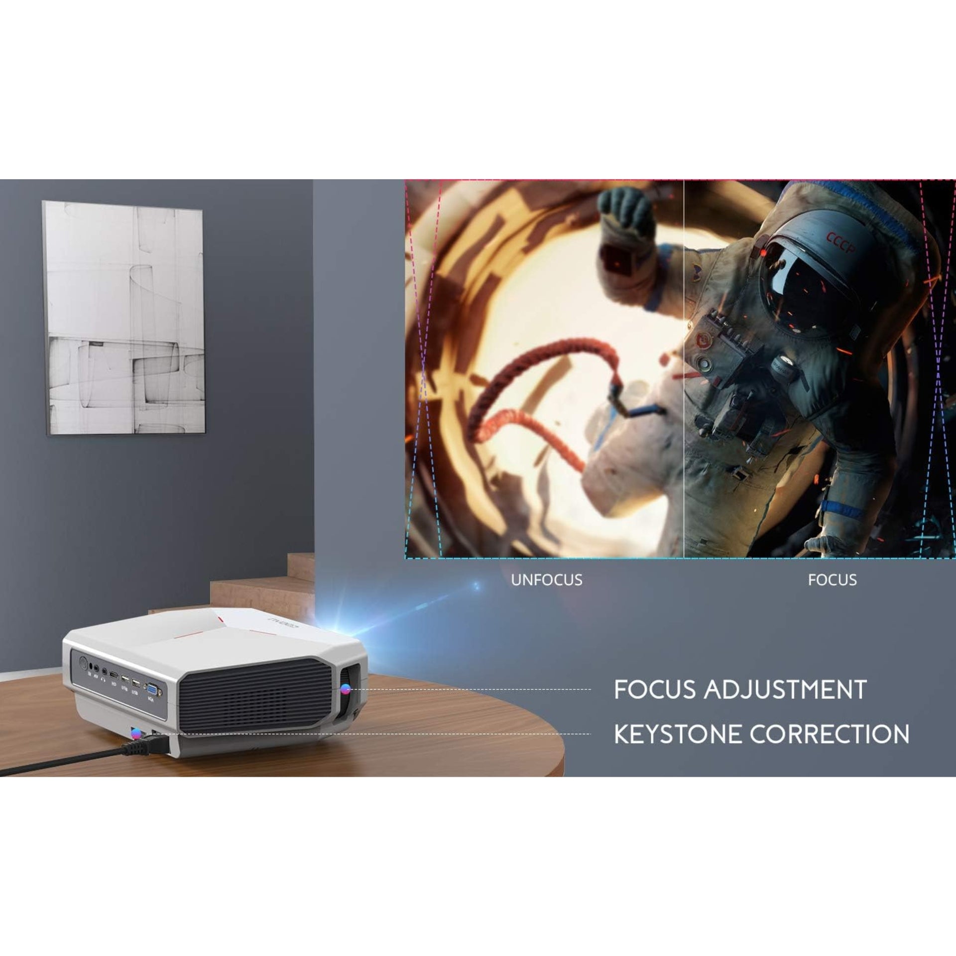 • 🎦 Brilliant Contrast & Perfect Display ---- The contrast has been enhanced up to 4000:1 by the upgraded high color reproducibility optical engine, the movie projector expresses an outstanding colorful image from the center to the periphery. The projector will release a 45-200 inch display with projection distance 4.6ft-18.7ft. Offers an immersive experience to audience. This projector also supports 25% zoom adjustment. Easily get a suitable image size without changing the projector distance.