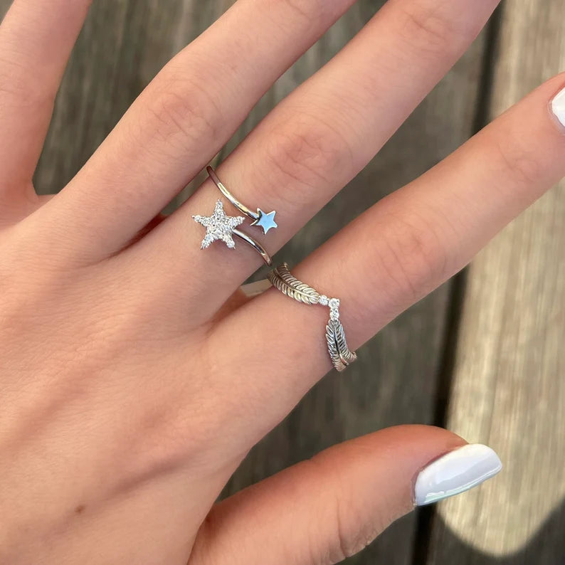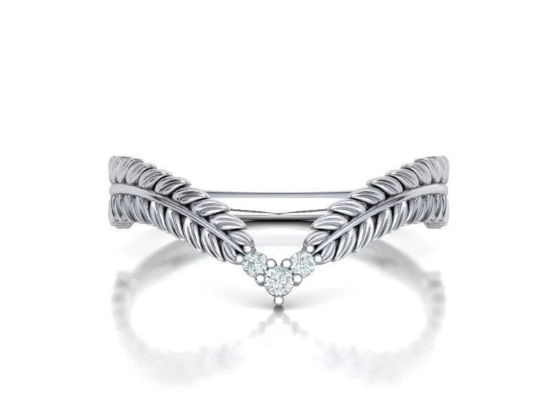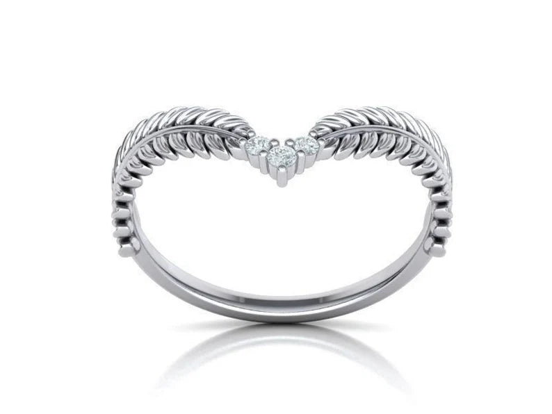 Solid Silver Diamond Band | Chevron Ring | V Shaped Band | Diamond Leaf Ring | Stackable Ring | Wedding Ring