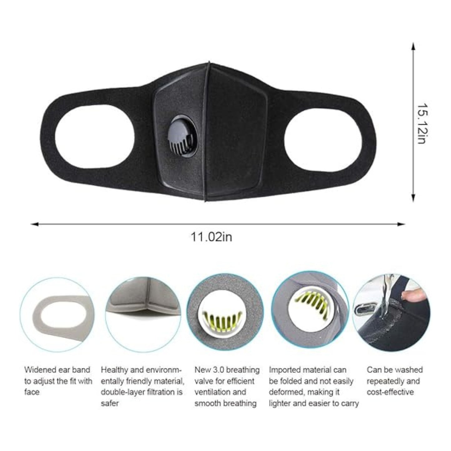 - 2 Pack Sponge Face Cover with Breathing Valve, Washable, Reusable, Face Cover – Protection from Dust, Pollen, Black