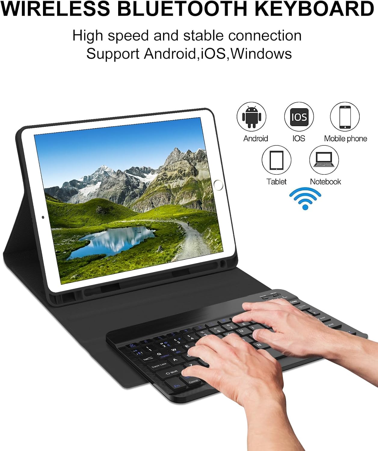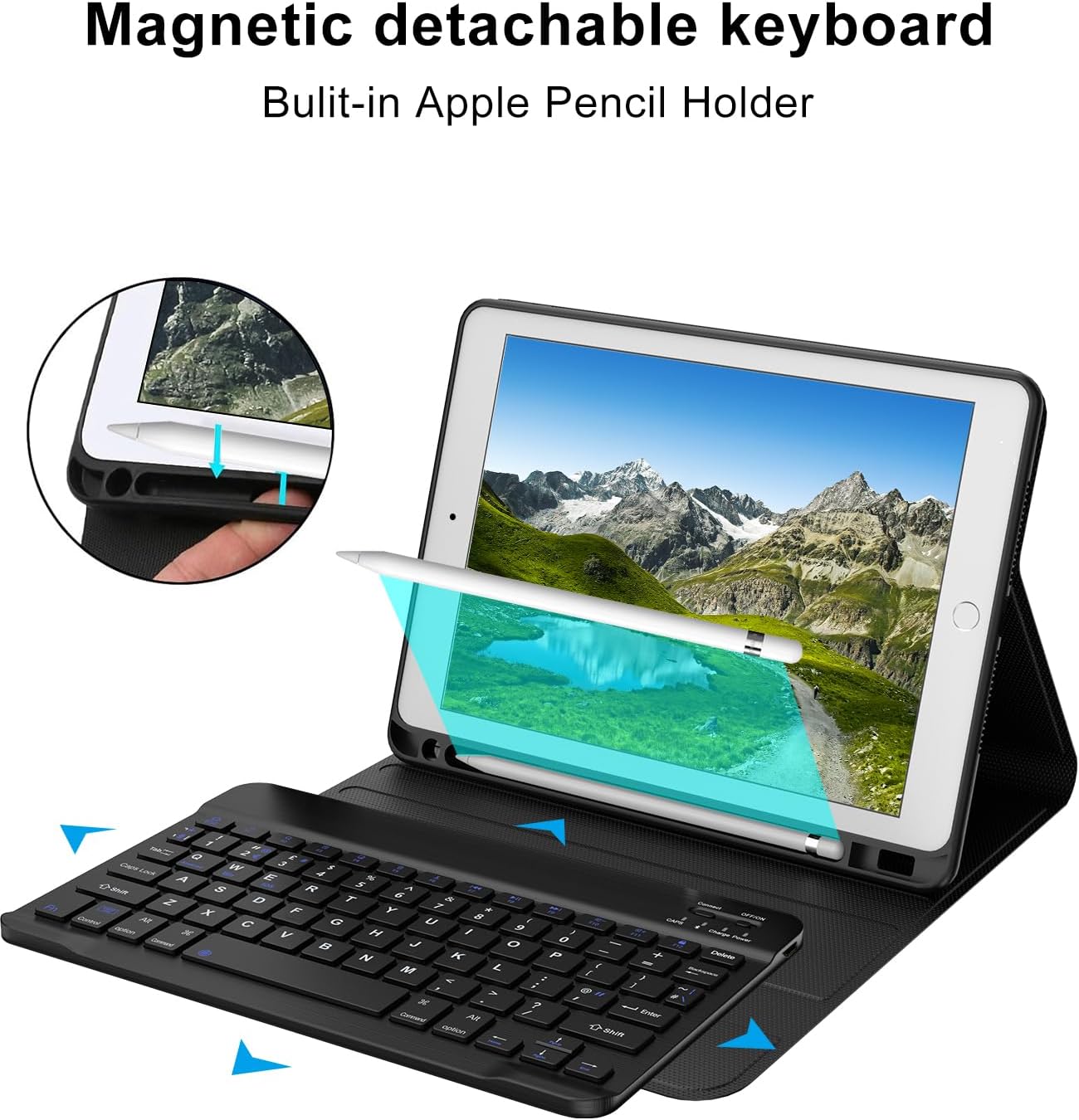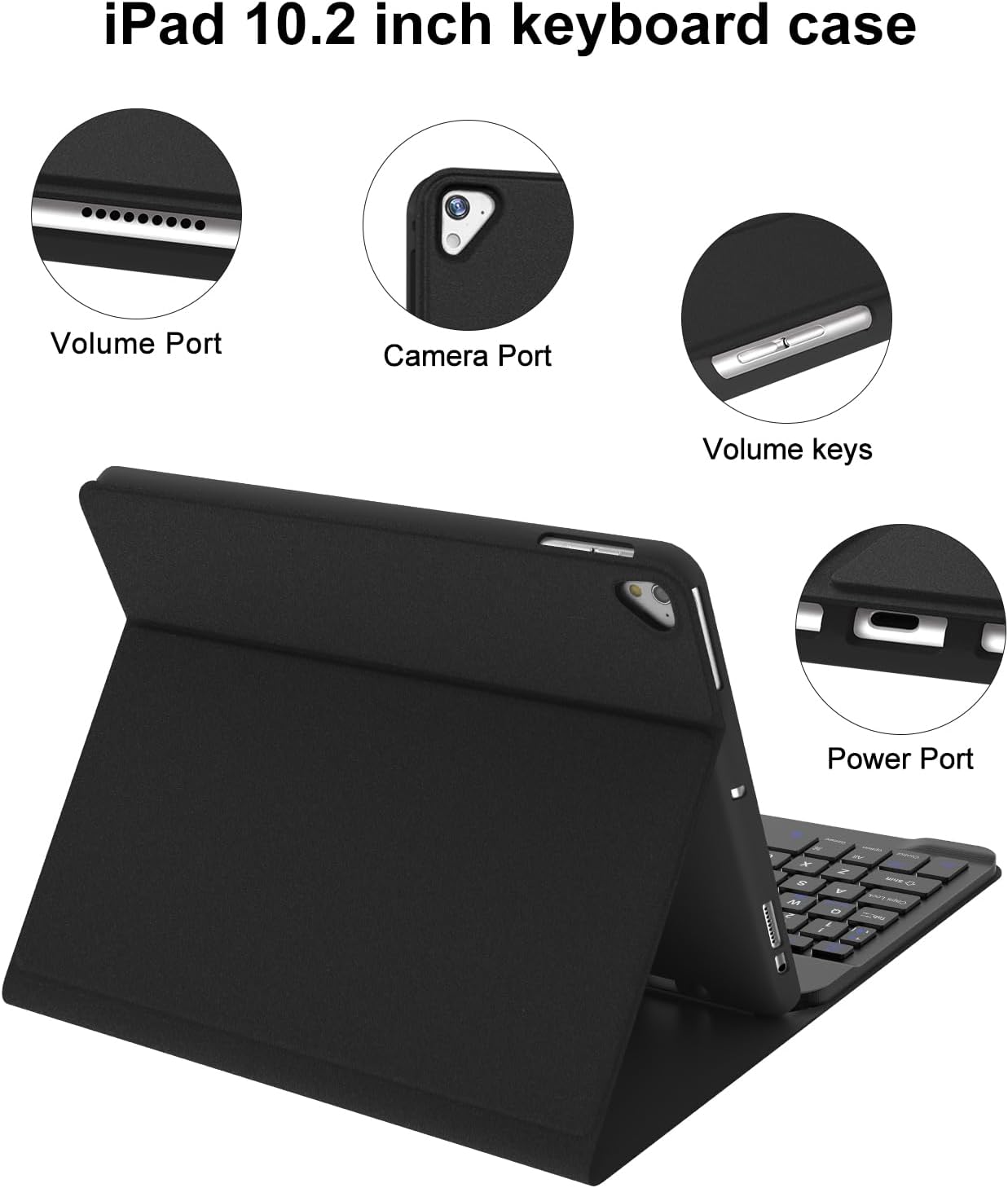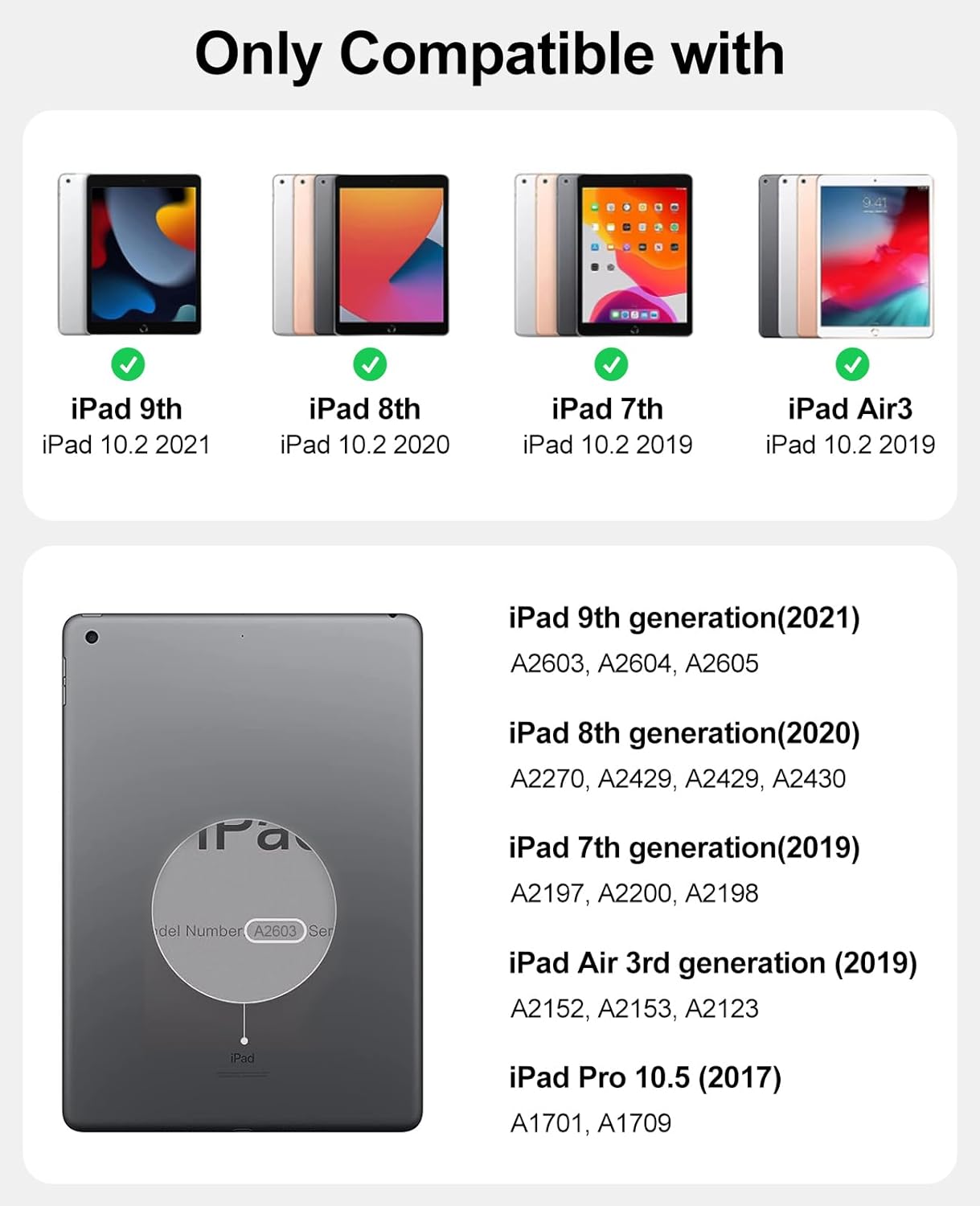 KVAGO iPad Keyboard Case 10.2 inch for iPad 9th Generation(2021) 8th(2020) 7th(2019), iPad Air 3rd Gen 10.5" 2019, iPad Pro 10.5 inch 2017 Case with Keyboard, Detachable Bluetooth Keyboard (Black)