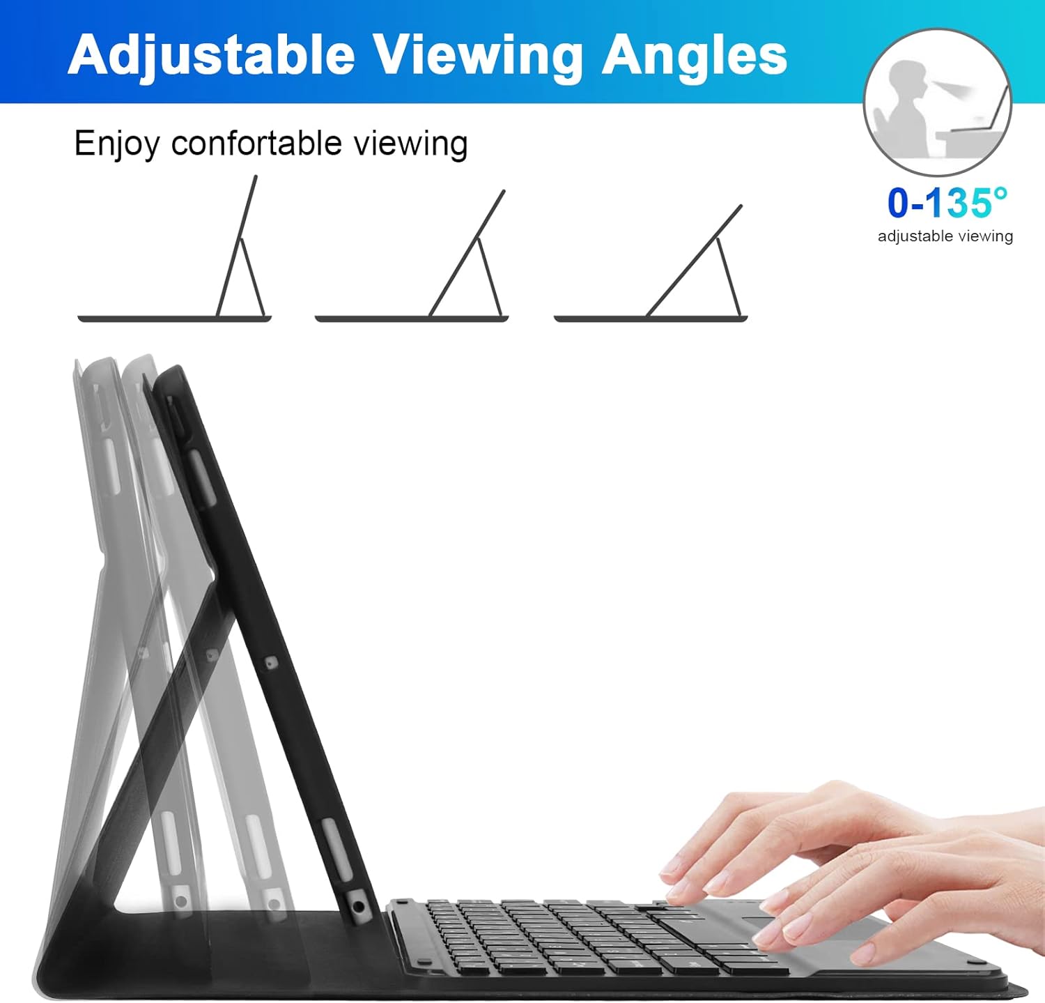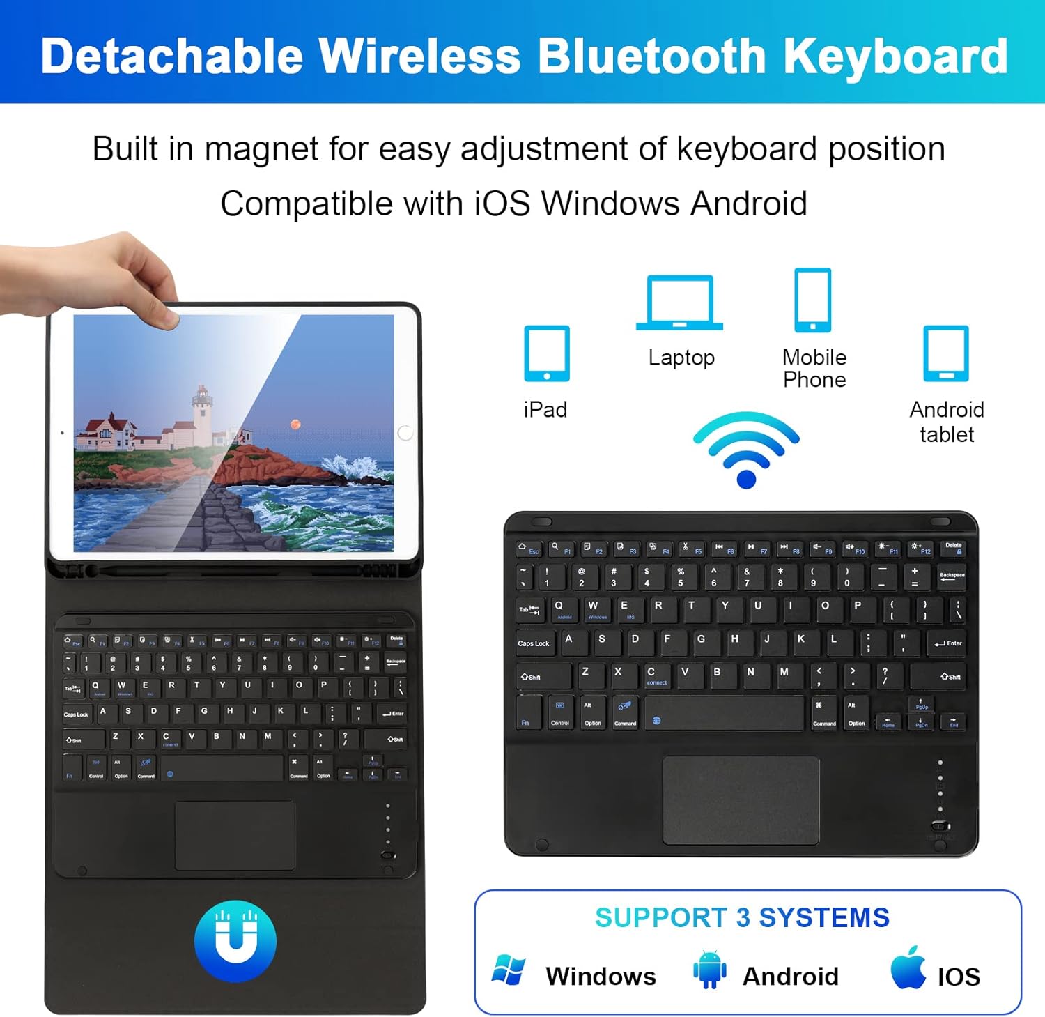 - ⌨️【Touchpad Keyboard Design】The built-in touchpad allows you to navigate and control the cursor like a laptop, no need to touch the screen or use an additional mouse. Bluetooth keyboard supports 3 systems, IOS, Android and Windows. ✘ Note: To use the keyboard touchpad, Please go to the iPad accessibility setting to turn on the assistive touch function first!It supports IOS 13.2.2 and above.