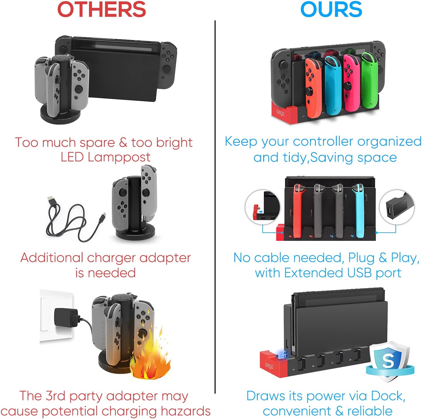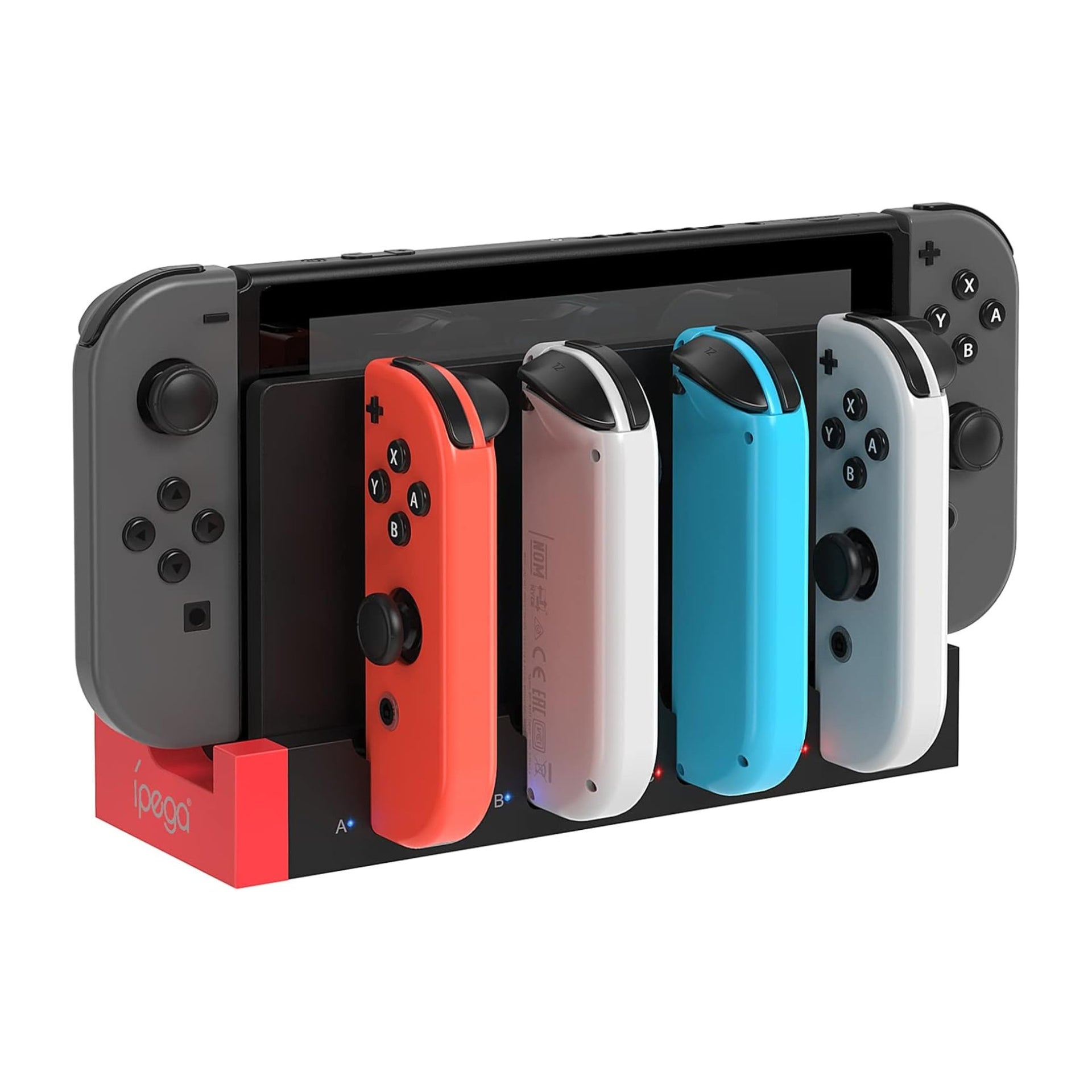- ipega Charger for Switch &Switch OLED Joy Cons Controllers, Charging Dock Base Station for Nintendo Switch Joycons with Indicator, Charger Station Stand for Joy Cons